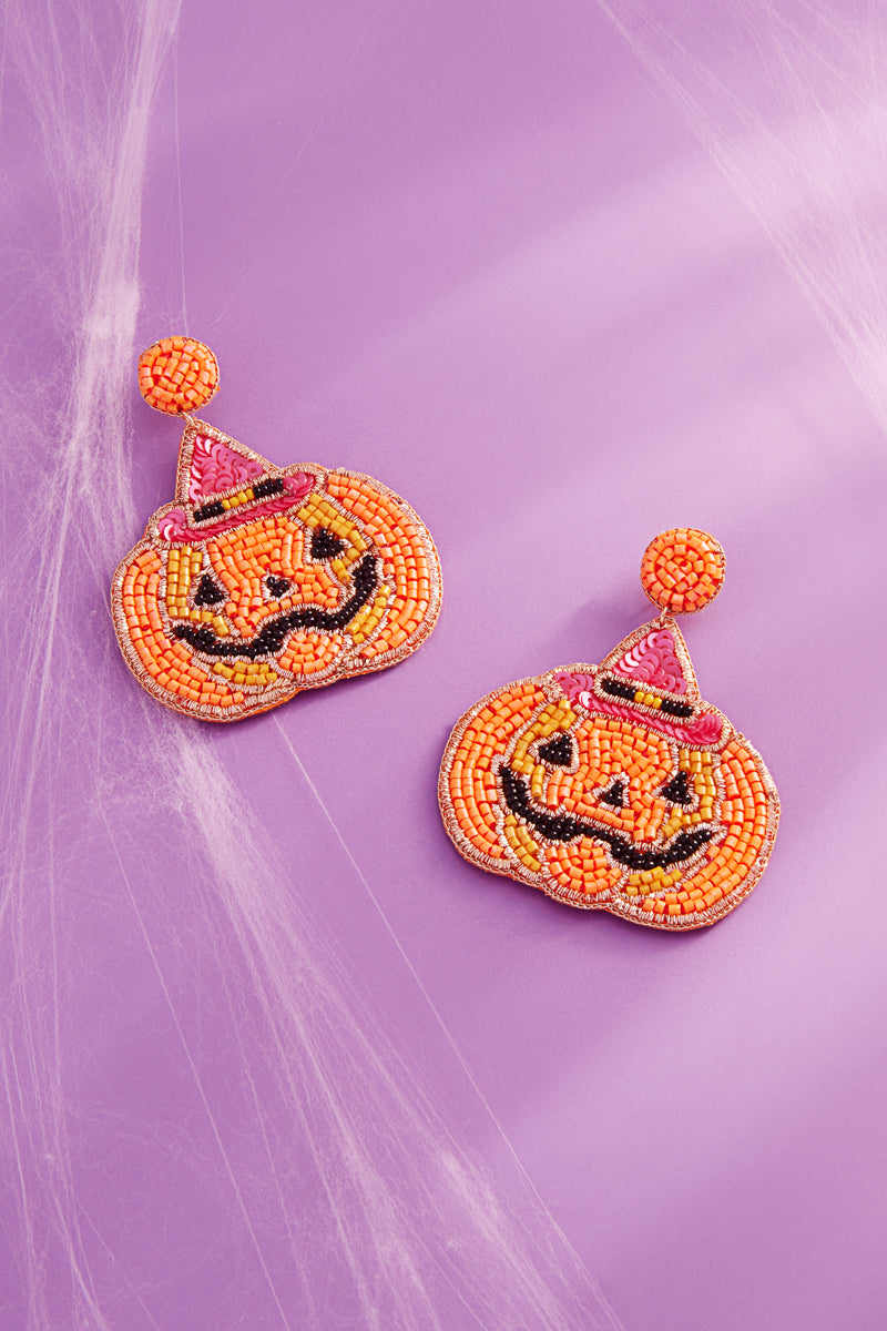 Halloween Wizard Pumpkin Indian Bead Post Earrings