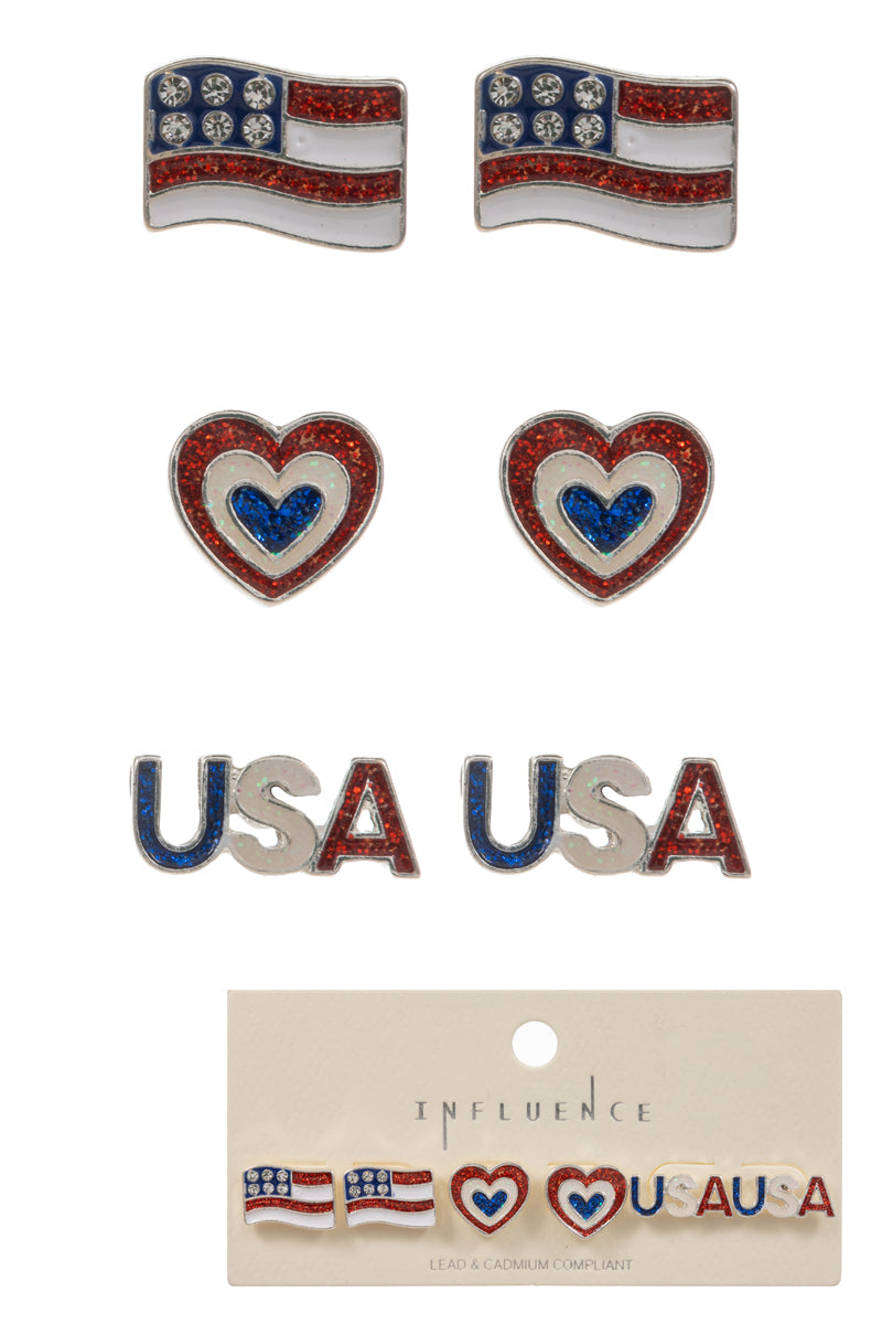 The set includes 3 pairs, perfect for adding a patriotic touch to any outfit. Made with high-quality materials, these earrings are a stylish and meaningful accessory.