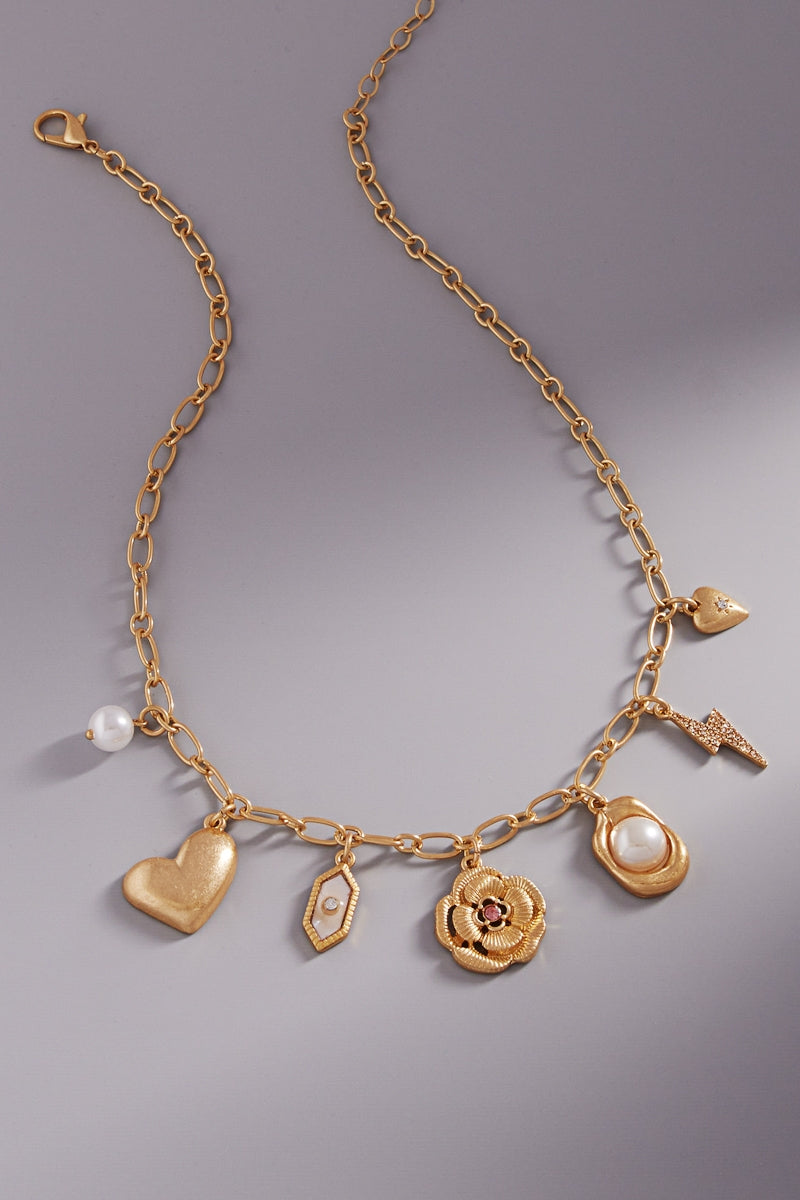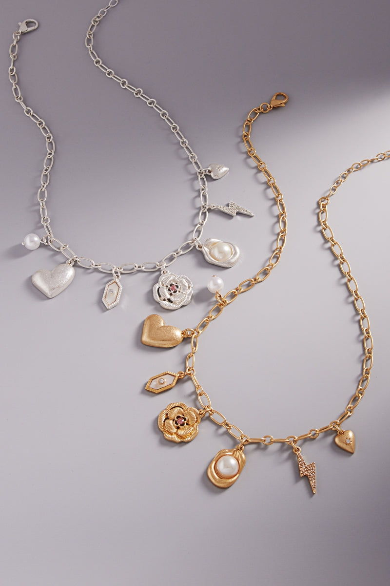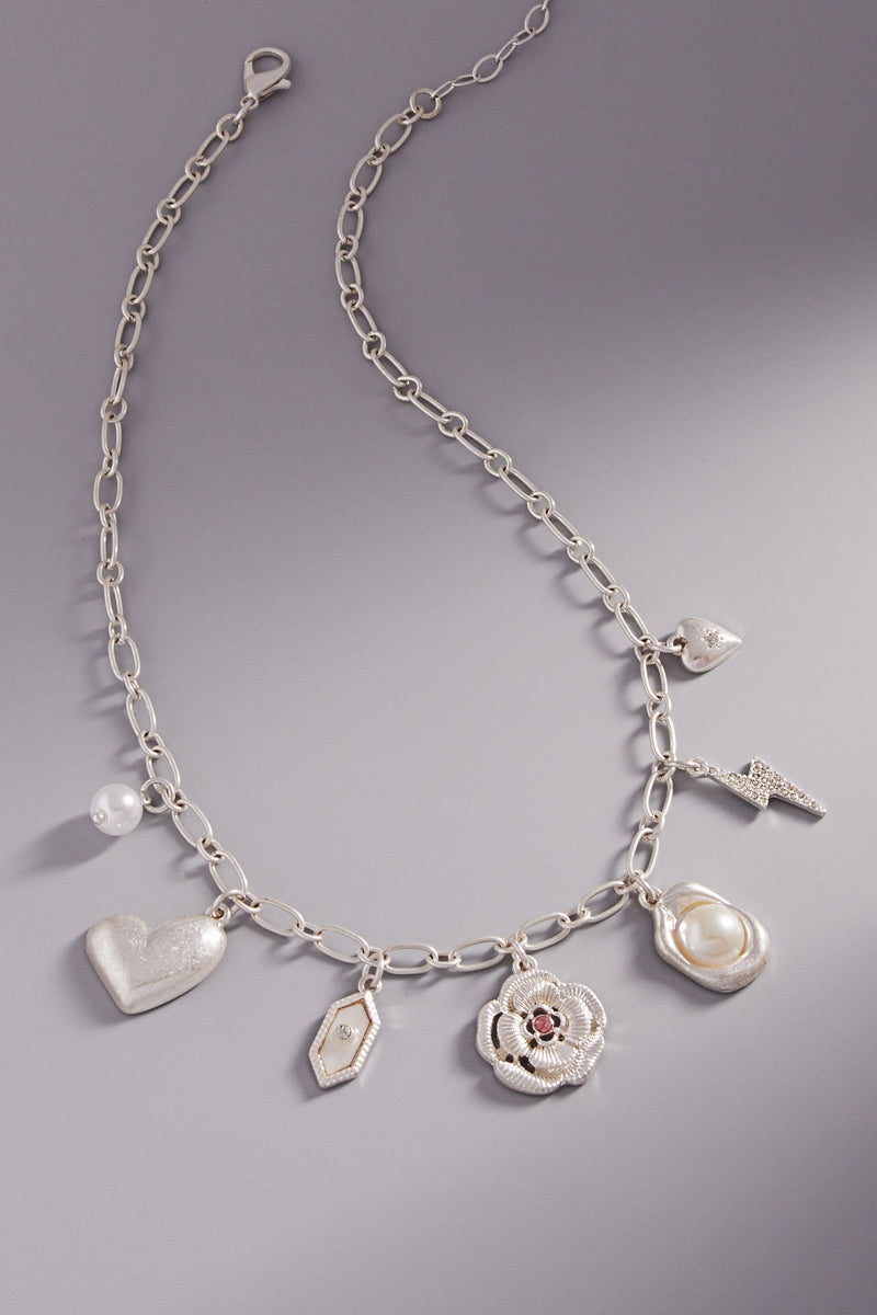 Heart Pearl Bolt Metal Mixed Charm Short Necklace