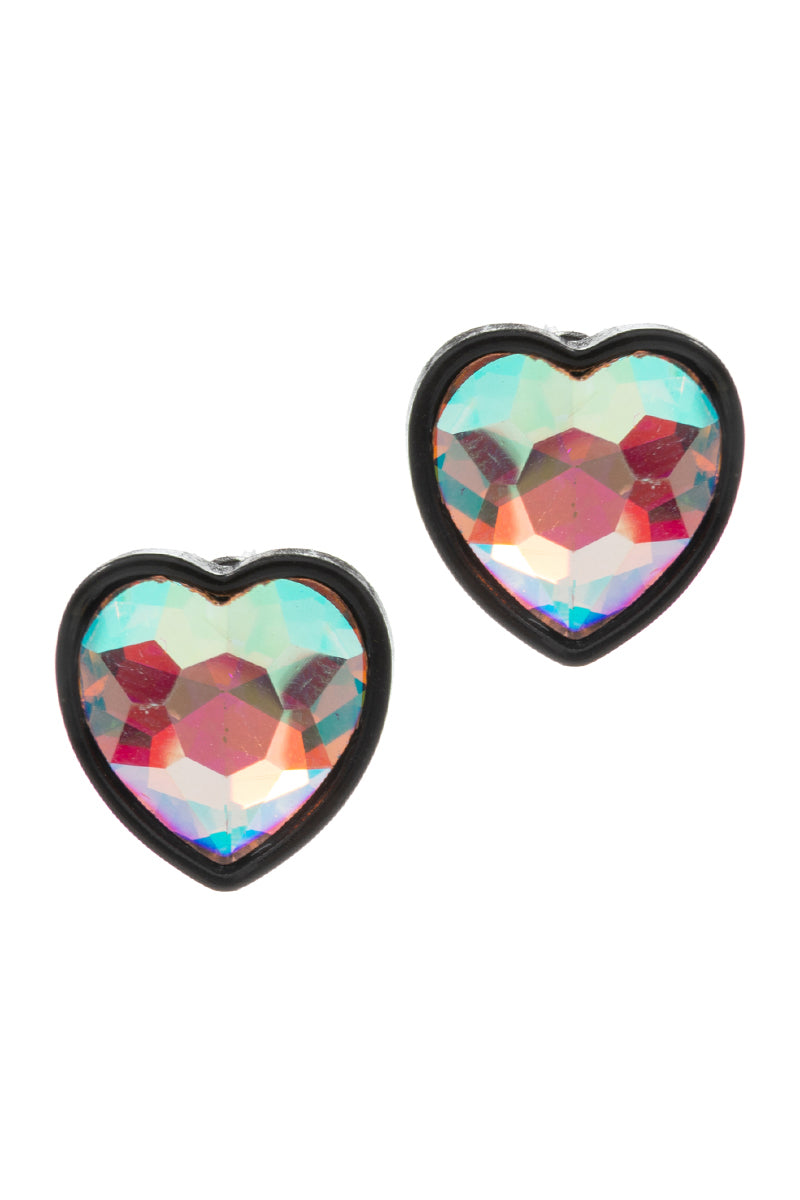 Heart Shaped Ab Glass Stone Post Earrings