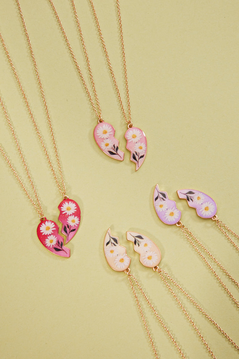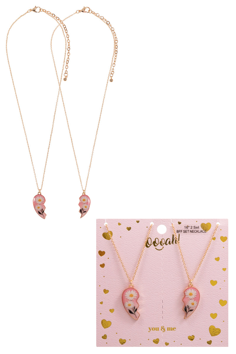 Heart With Flowers Bff 2Set Necklace