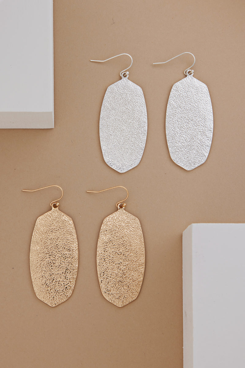 Hexagon Shaped Textured Metal Hoop Earrings