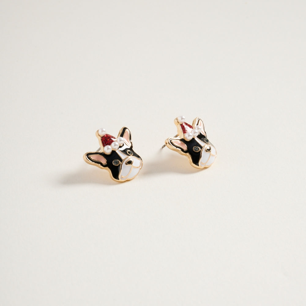 Holiday Christmas Dogs in Santa Hat Post Earrings
