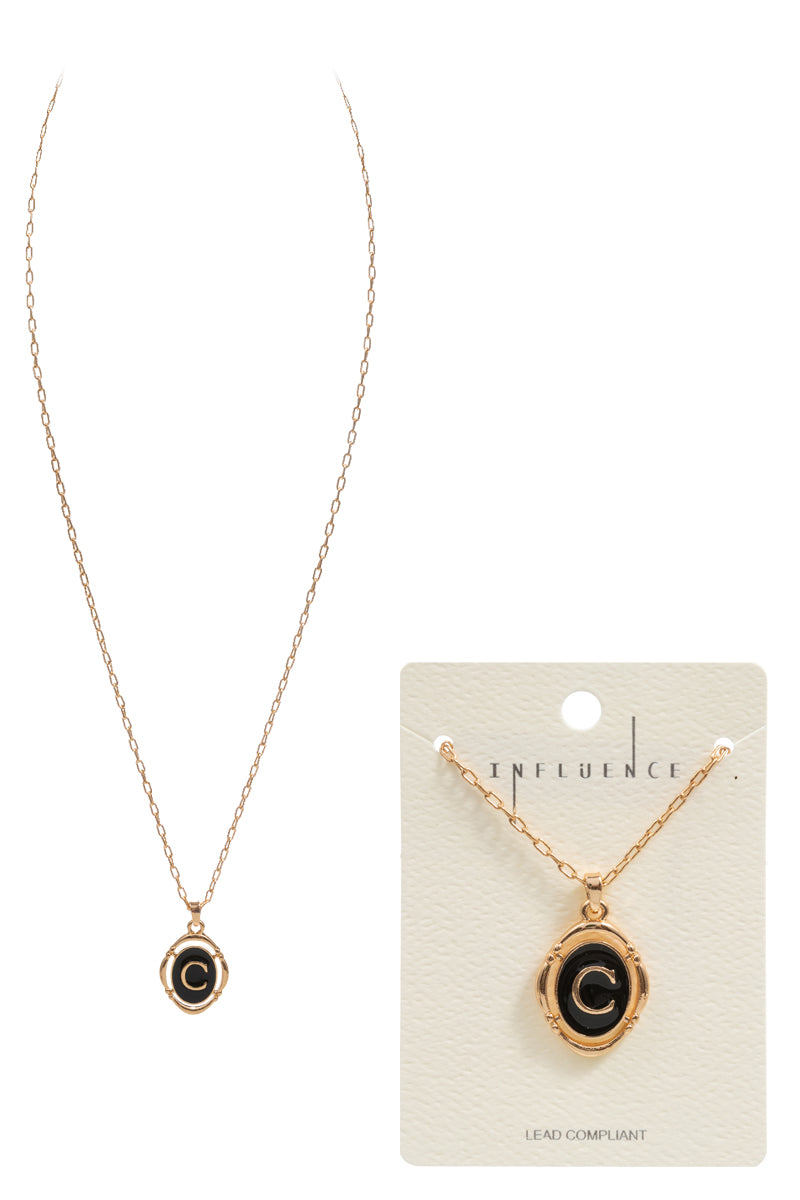 Initial C In Circle Enamel Short Necklace