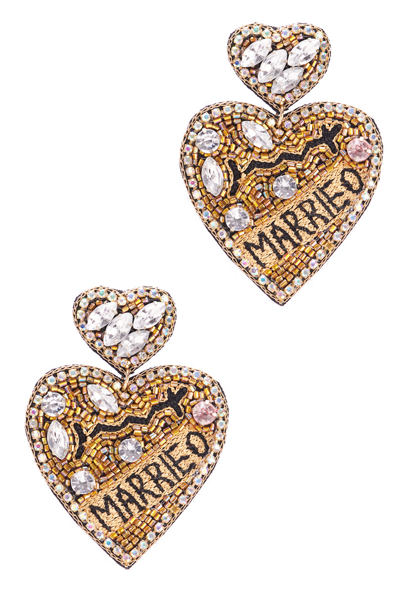 These Just Married post earrings measure 2.75 inches. Made from high-quality materials, they are the perfect way to add a touch of style to your wedding ensemble.