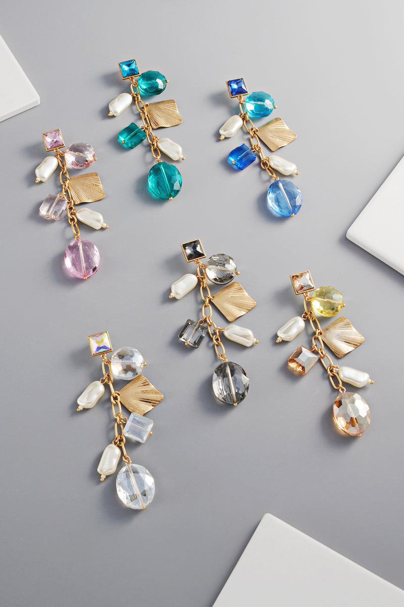 Linear Glass Charm Post Earrings