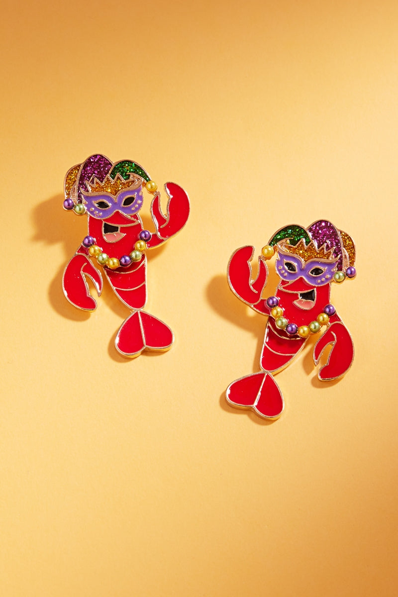 Lobster Enamel Mardi Gras Mask Hat Post Earrings
