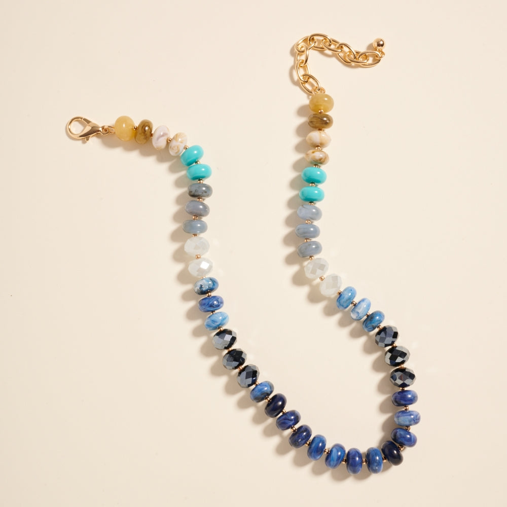 Crafted with oval resin disks, this beaded necklace showcases a graceful ombre gradient and marbled detailing for timeless appeal.