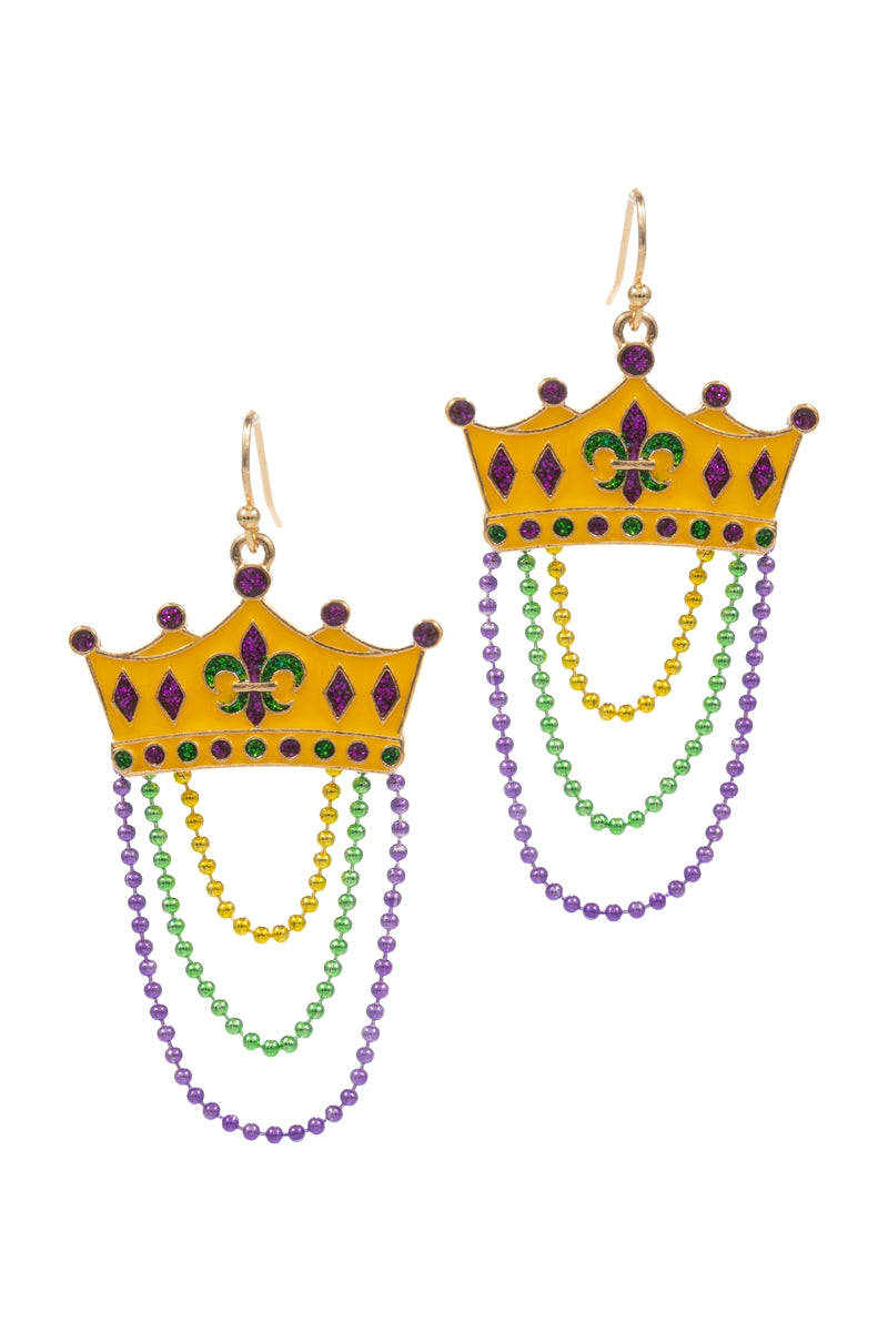 Mardi Gras Crown W Ball Chain Drop Hook Earrings