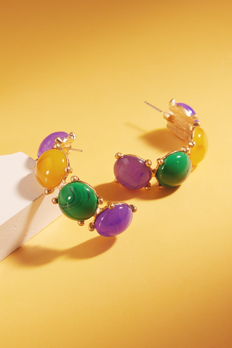 Mardi Gras Faux Stone Prong Set Hoop Earriings