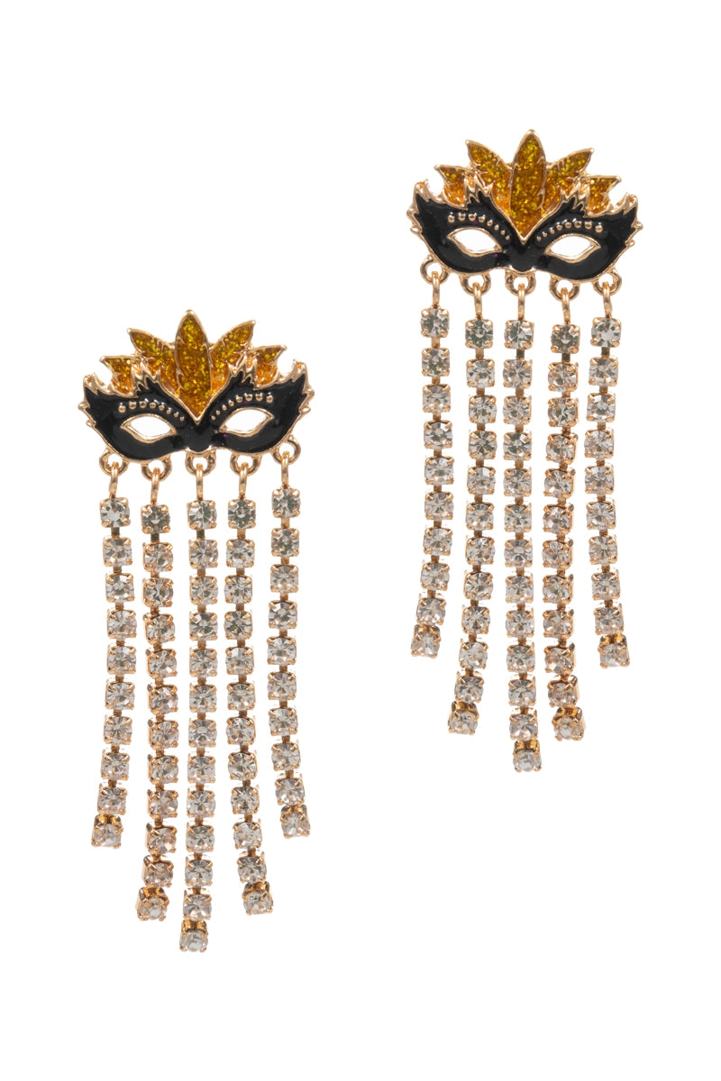 Mardi Gras Mask Rhinestone Tassel Post Earrings