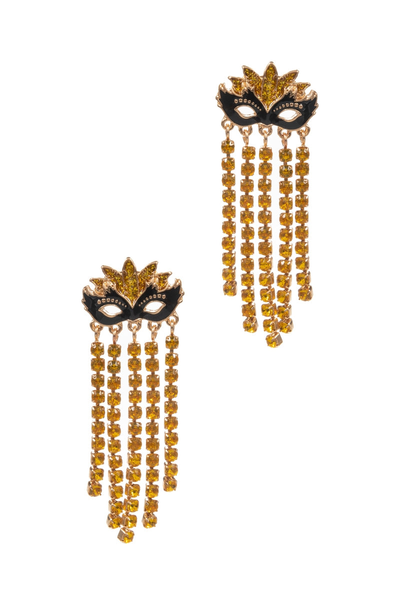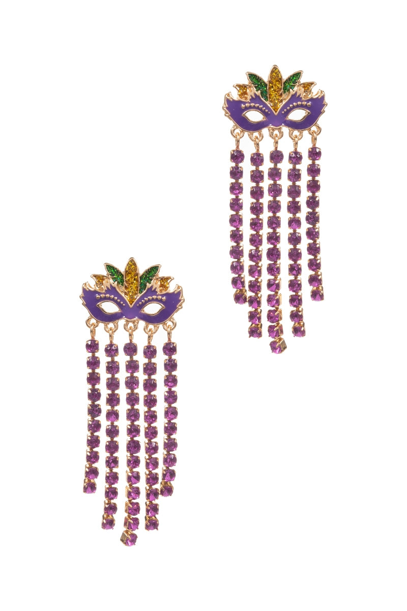 Mardi Gras Mask Rhinestone Tassel Post Earrings