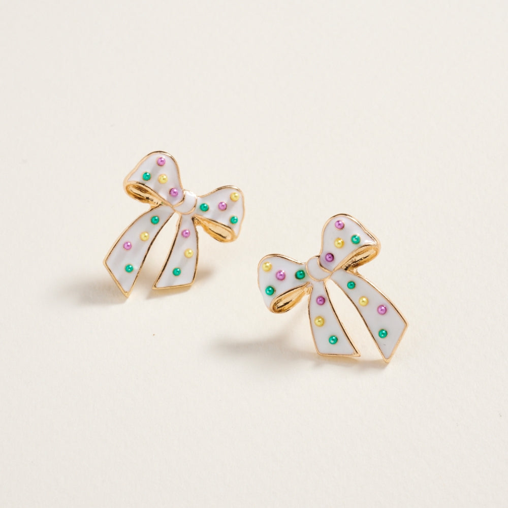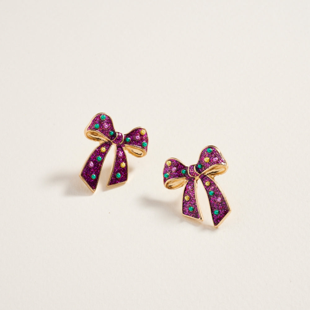 Mardi Gras Pearl Ribbon Bow Post Earrings Jewelry