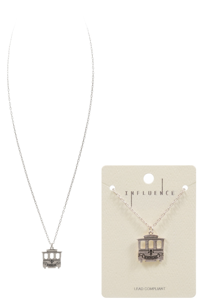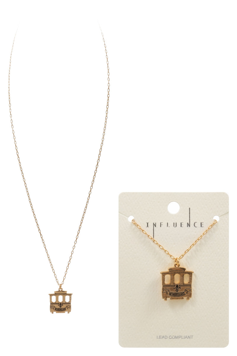 Mardi Gras Trolly Car Shaped Metal Short Necklace