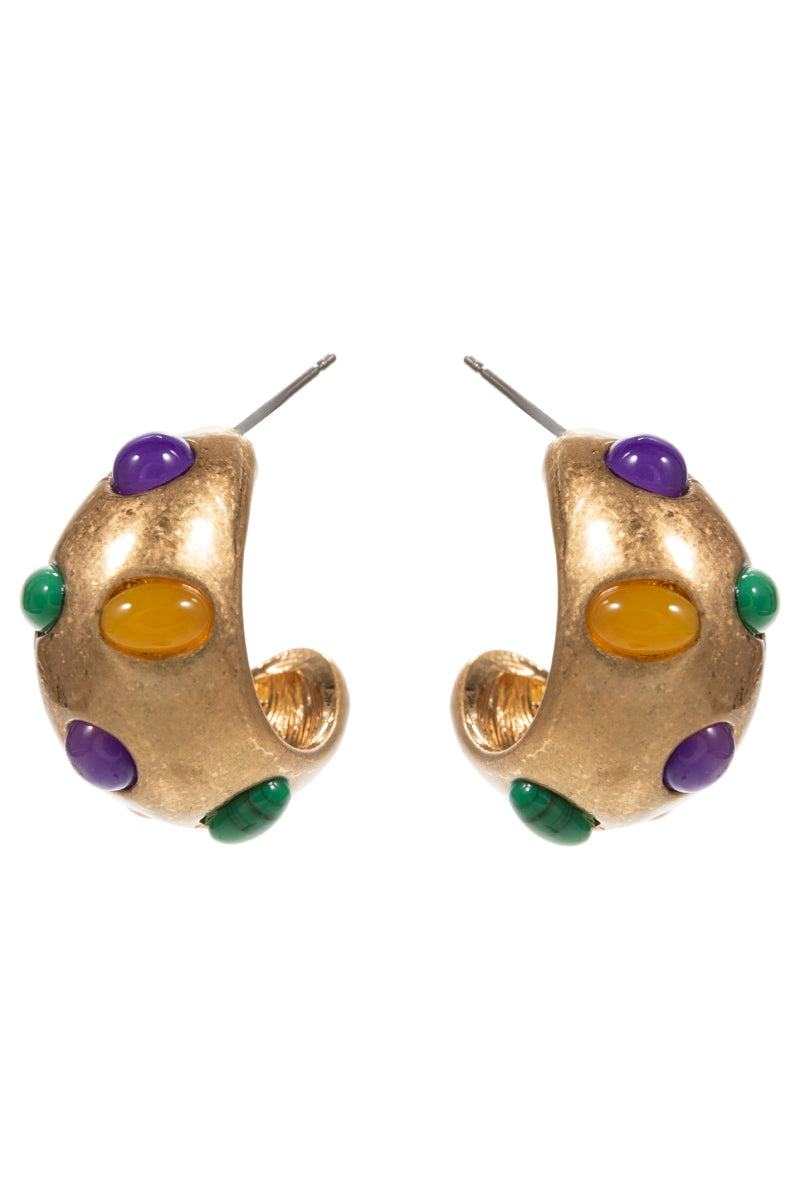 Mardi Gras Vintage Faux Stone Paved Hoop Earrings