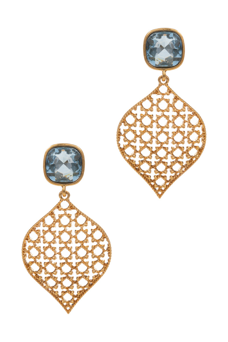 This 2.5 inch marquise shaped vintage filigree adds a touch of elegance to any look. The intricate design and stone post make it a timeless piece perfect for any occasion.