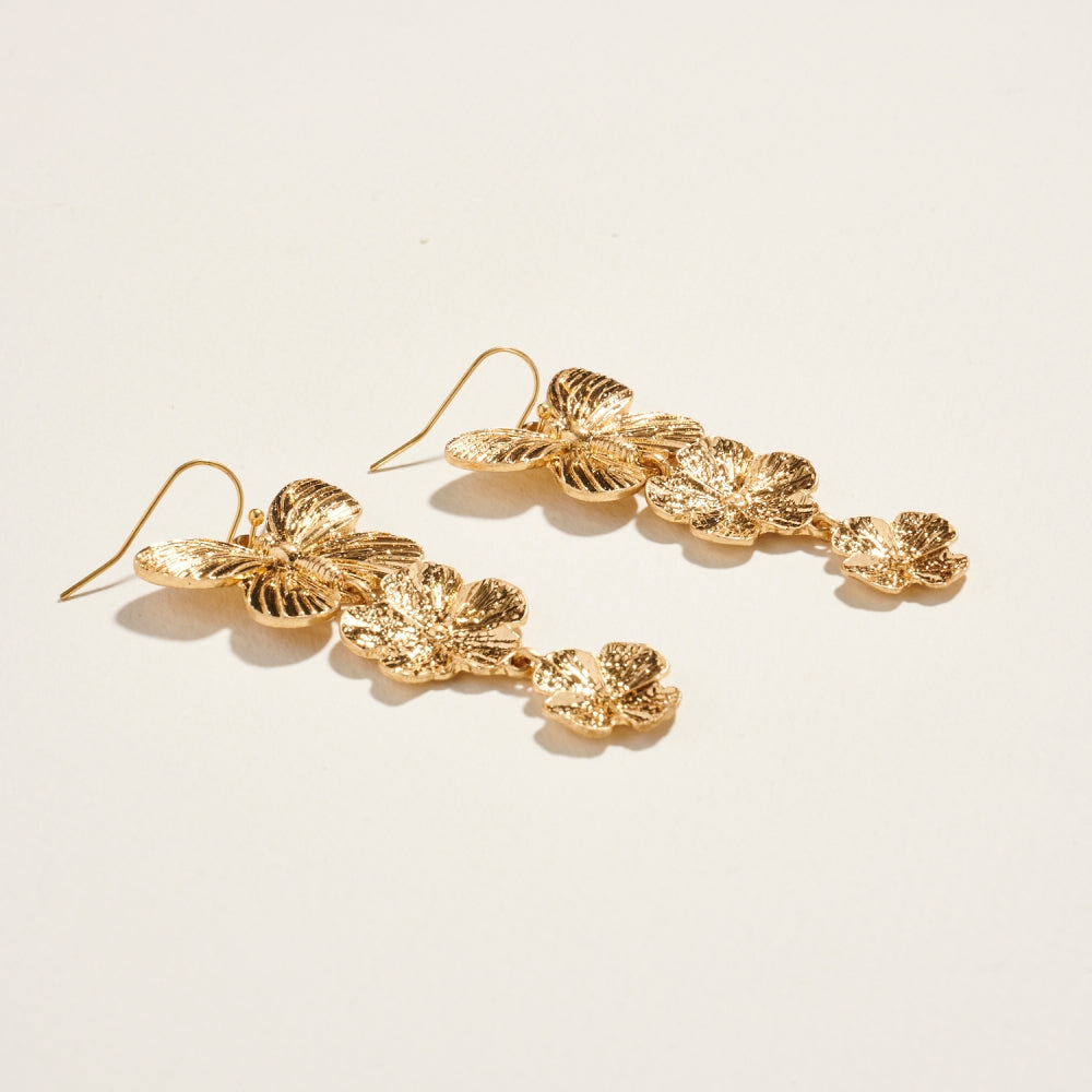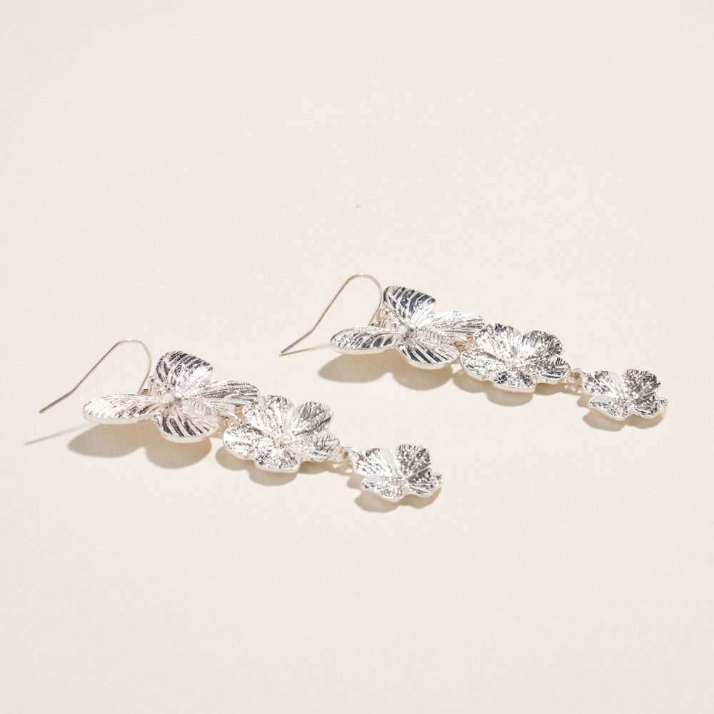 Metallic Butterfly Floral Link Drop Hook Earrings