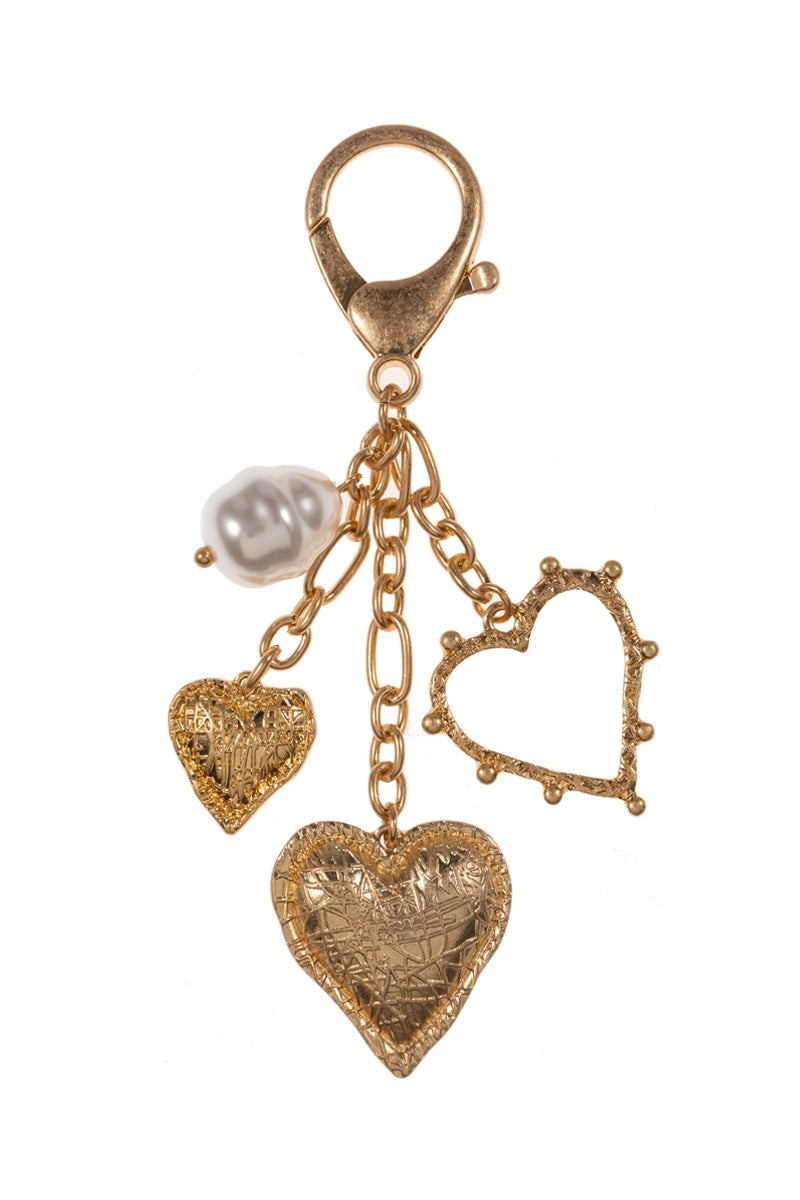 Multi Heart Metal Charm Pearl Bag Charm Keychain
