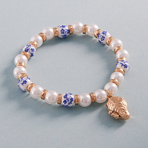 Oyster Locket Pearl Ceramic Bead Stretch Bracelet