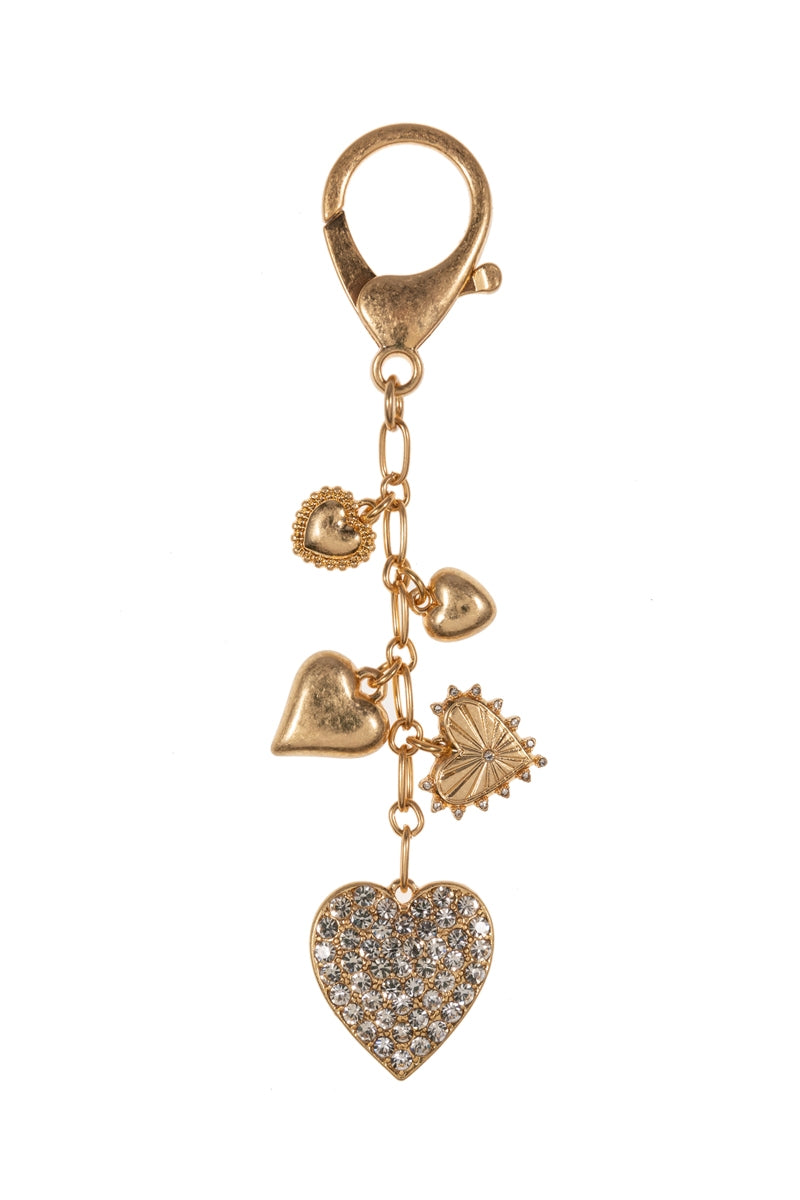 Paved Heart Mixed W Multi Charm Bag Charm Keychain