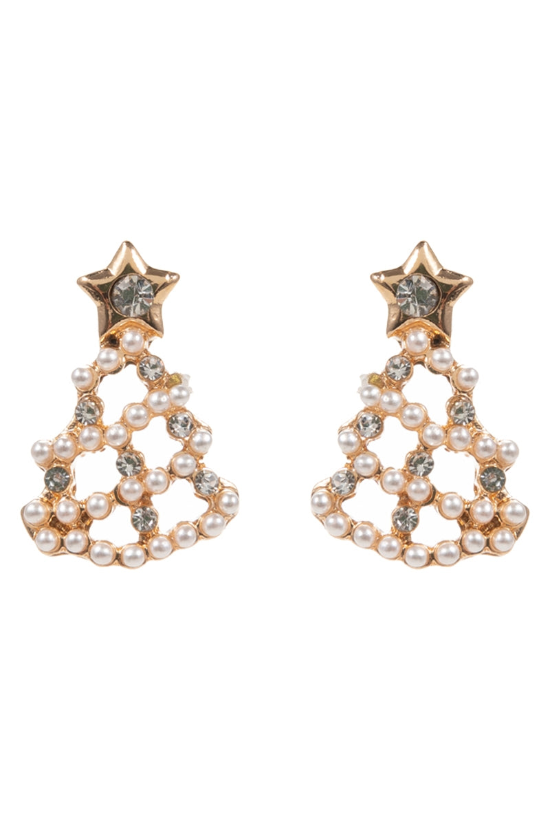 Pearl Rhinestone Christmas Tree Post Earrings
