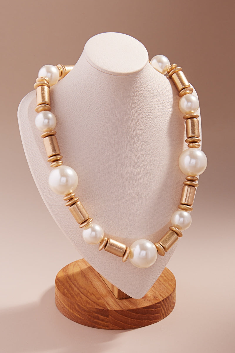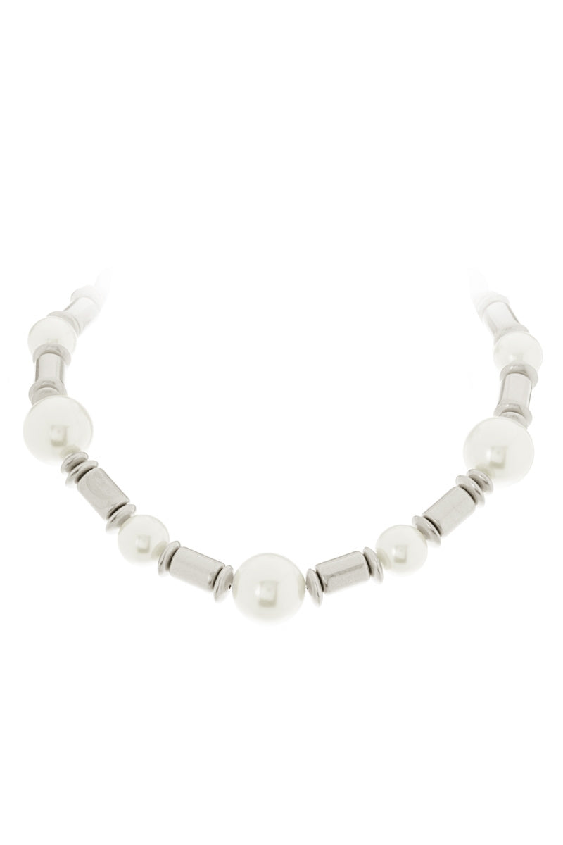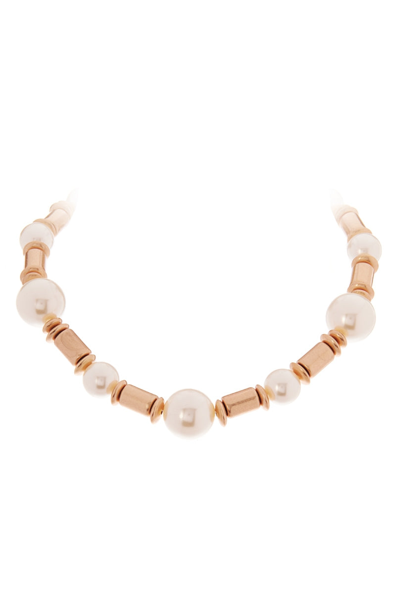 Elevate your style with our 17 INCH PEARL WITH VINTAGE METAL BEAD SHORT NECKLACE. Featuring a classic pearl design accented with vintage metal beads, this necklace adds a touch of elegance to any outfit. Perfect for formal occasions or adding a touch of sophistication to your everyday look.