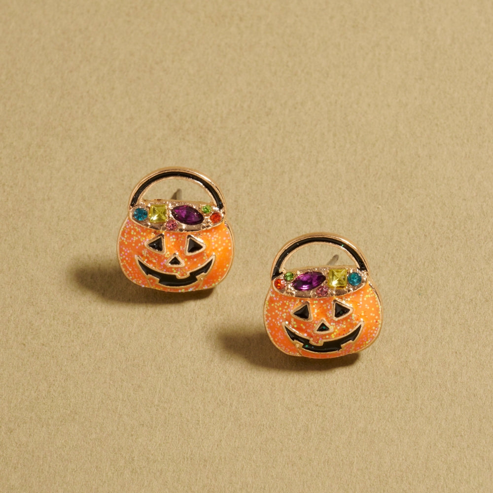 These pumpkin basket earrings add sparkle to your fall style with rhinestone accents and a festive design. Lightweight and playful, they are a fun choice for Halloween events or seasonal everyday wear.