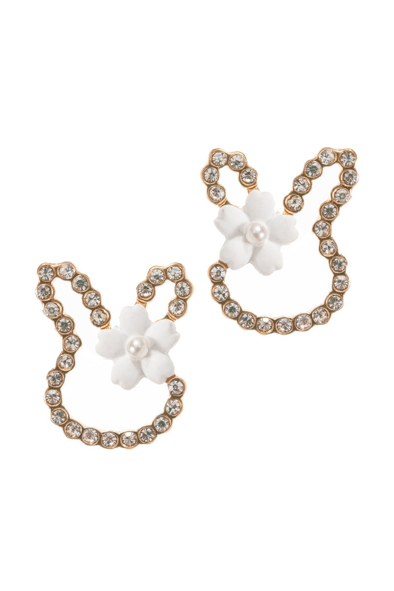 Rabbit Shaped W Flower Pearl Easter Post Earrings