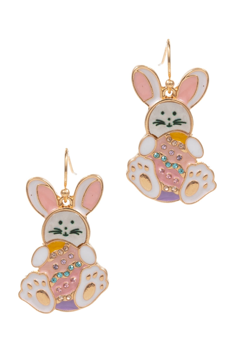 Rabbit W Easter Egg Shaped Easter Hook Earrings