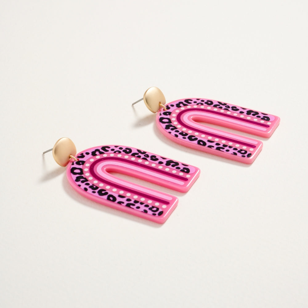 These resin post earrings combine rainbow hues with a bold animal print for a fun, eye-catching look. Lightweight and comfortable, they add instant personality to your style.