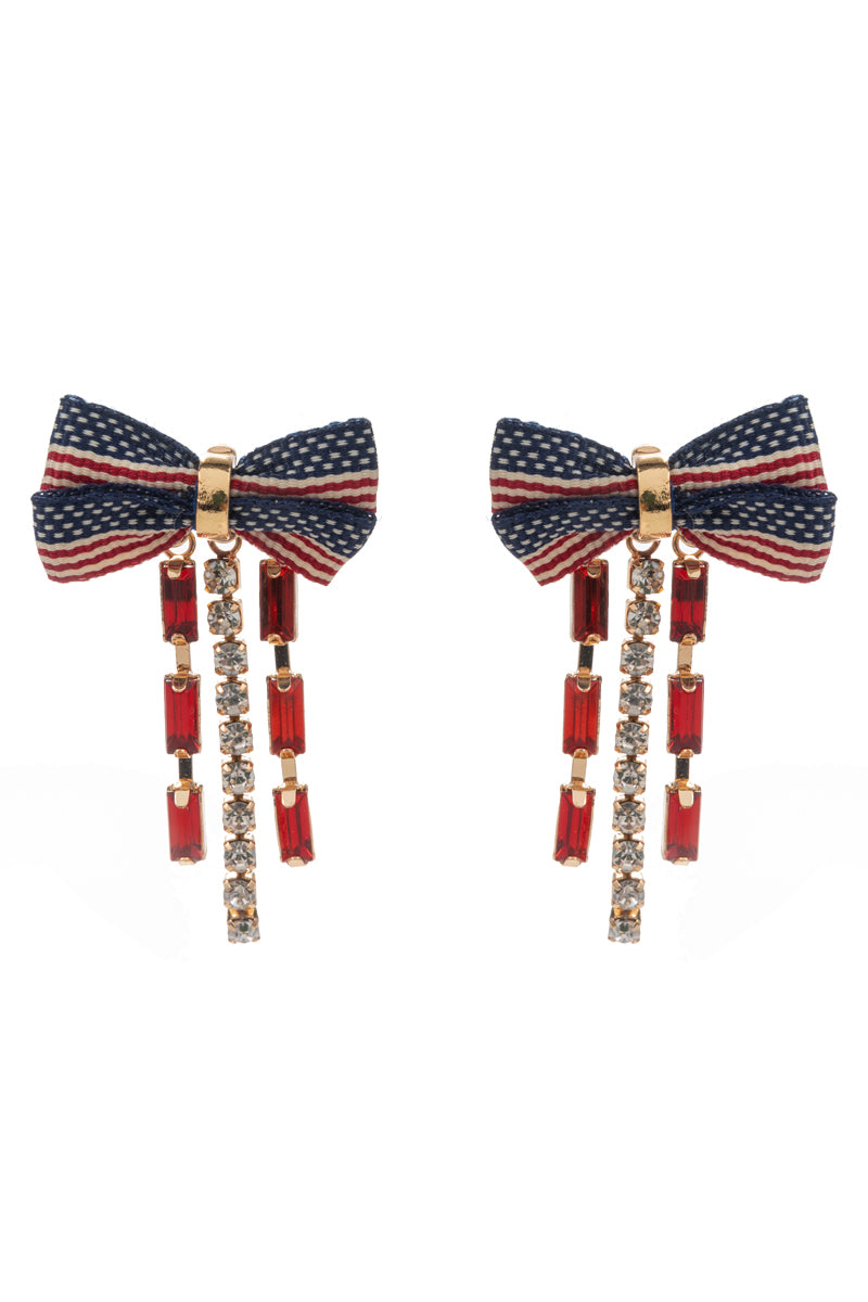 Elevate your patriotic style with our 2 inch ribbon-shaped American flag colored earrings! Made with a sturdy stone chain and post for comfortable wear. Show your love for your country with this elegant and unique accessory.