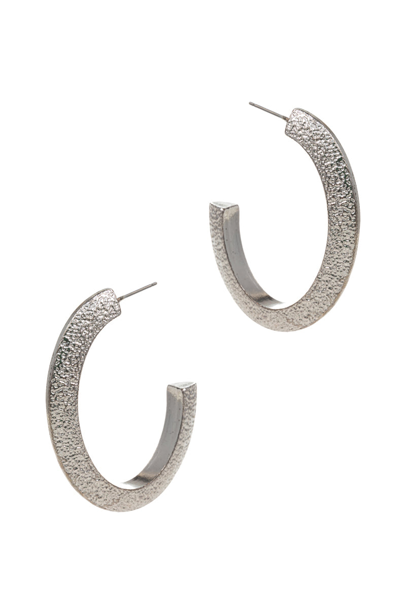 Ring Shaped Shiny And Textured Metal Hoop Earrings