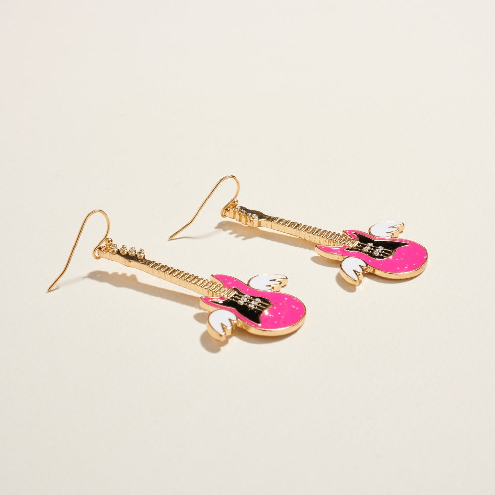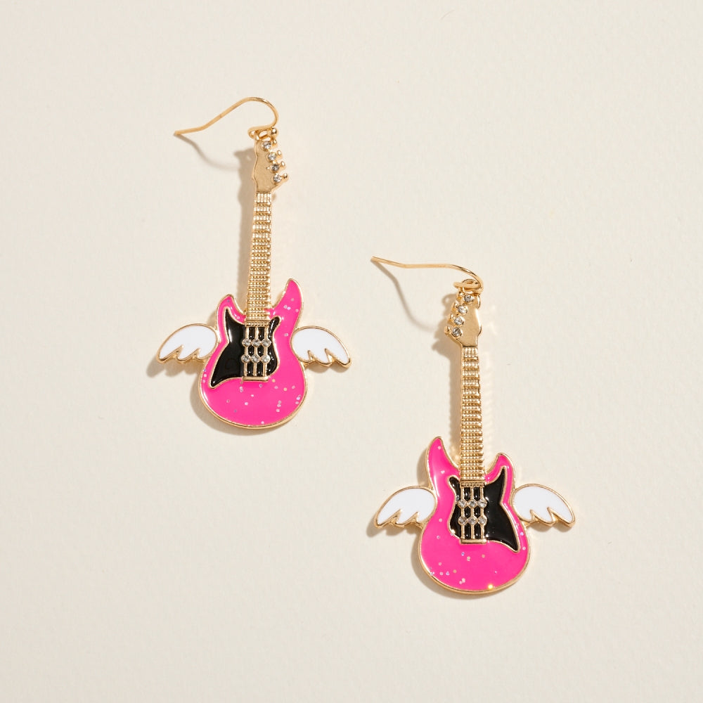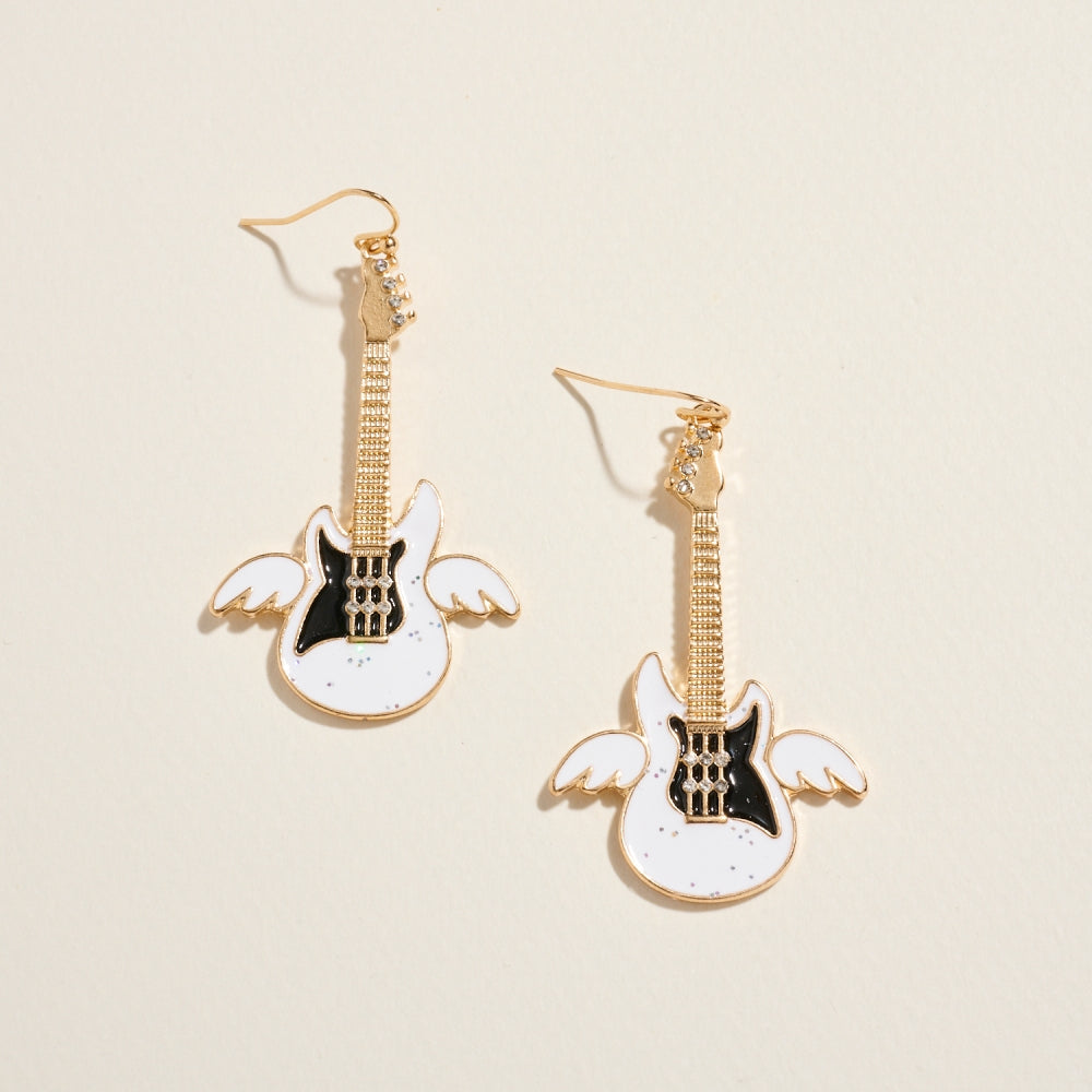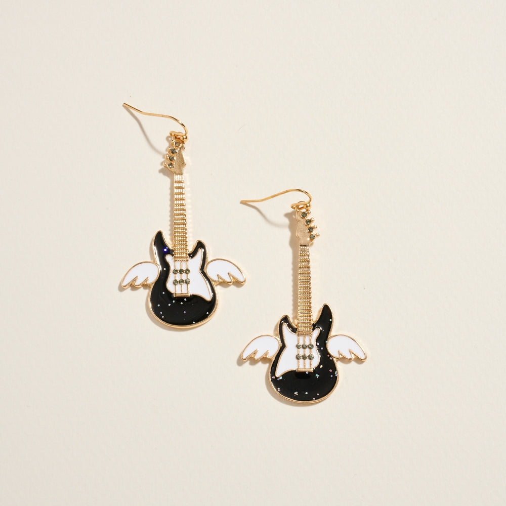 Turn up the volume on your style with these electric guitar earrings accented with wing details. A bold accessory perfect for concerts, festivals, and everyday rocker chic.