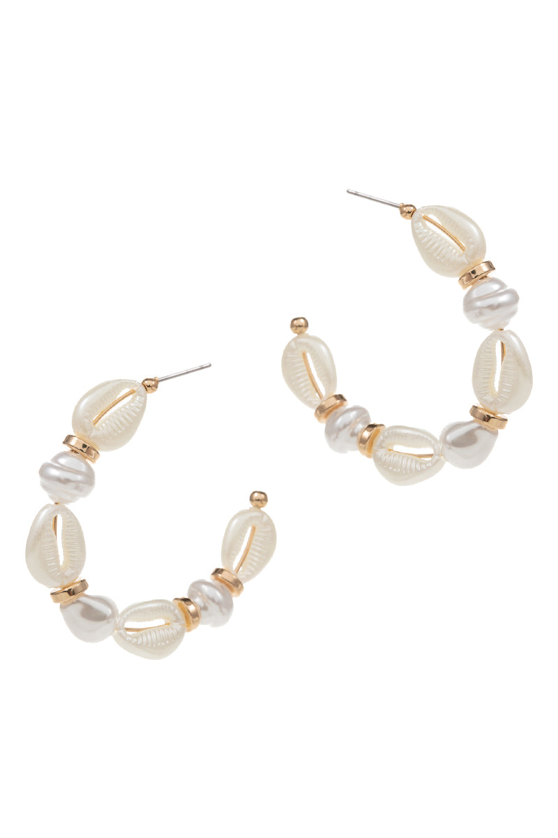 Round Fake Shell And Pearls Summer Hoop Earrings