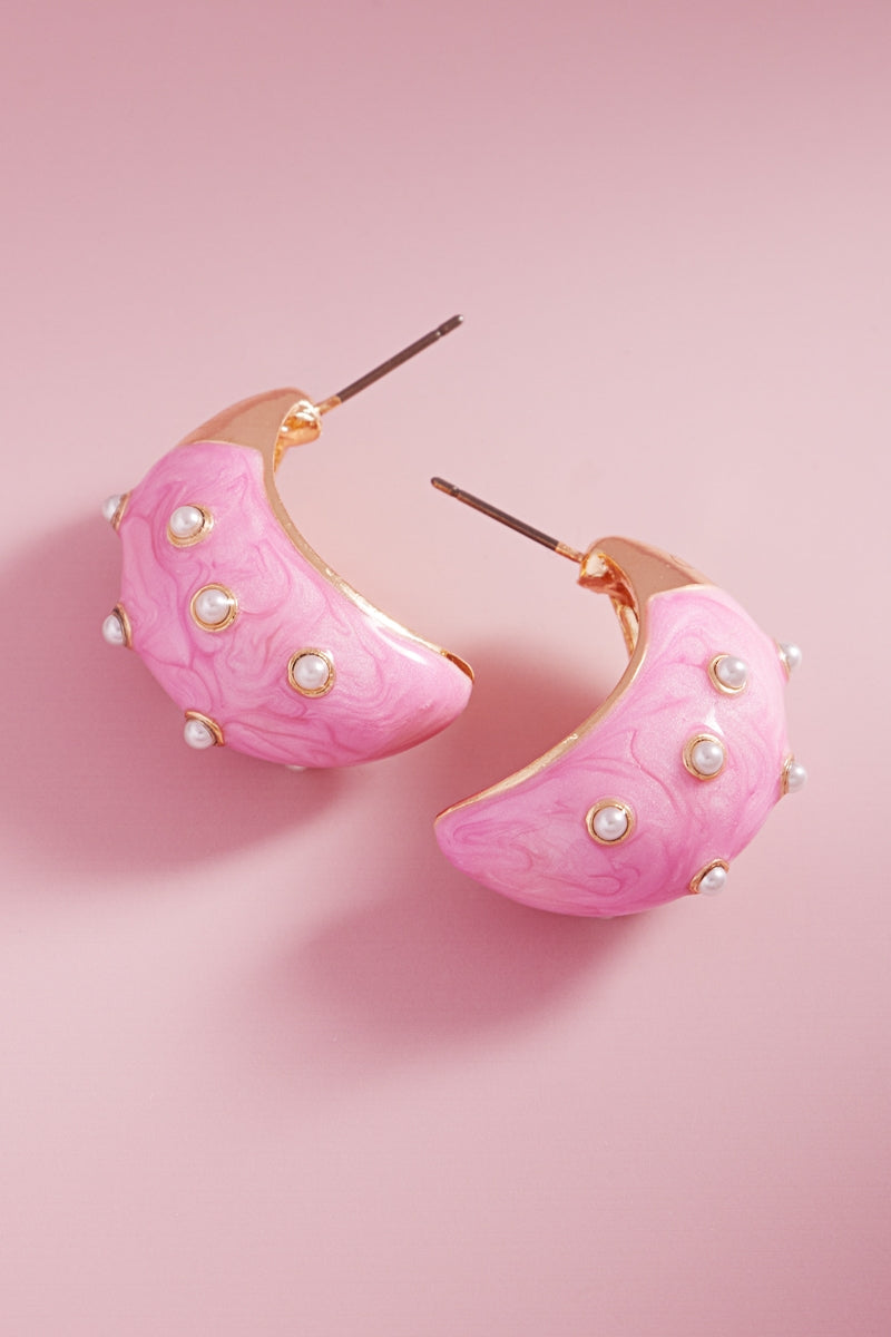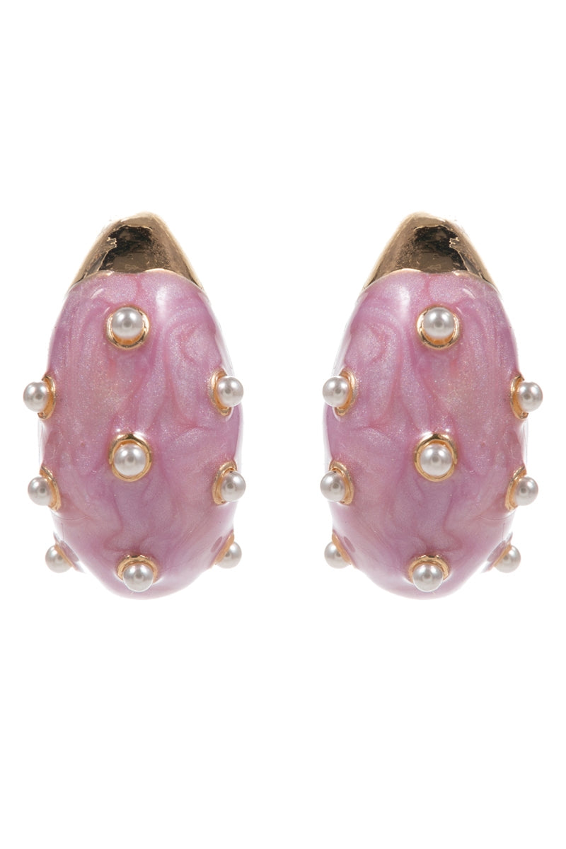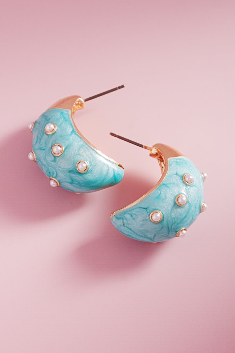 Introducing our 1-inch round shaped pearlized enamel earrings. Made with hypoallergenic titanium posts, they provide a comfortable wear for those with sensitive ears. The elegant pearls add a touch of glamour to any outfit. Perfect for those looking for style and comfort in one.
