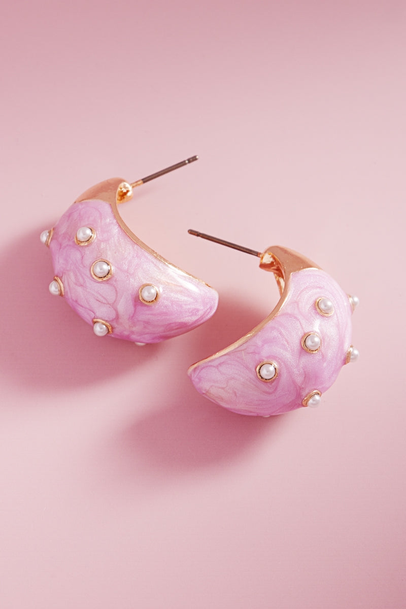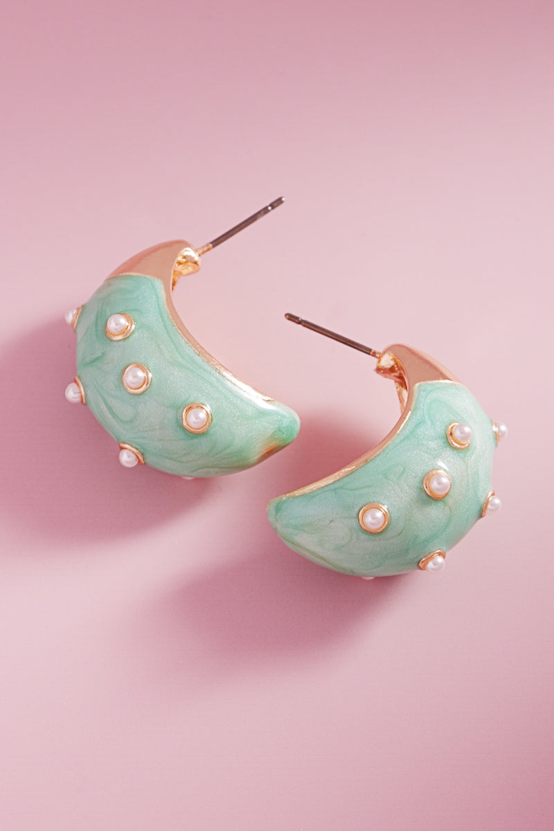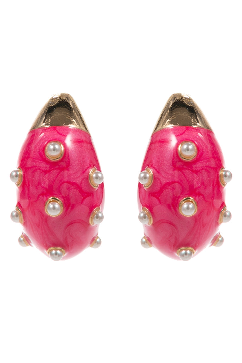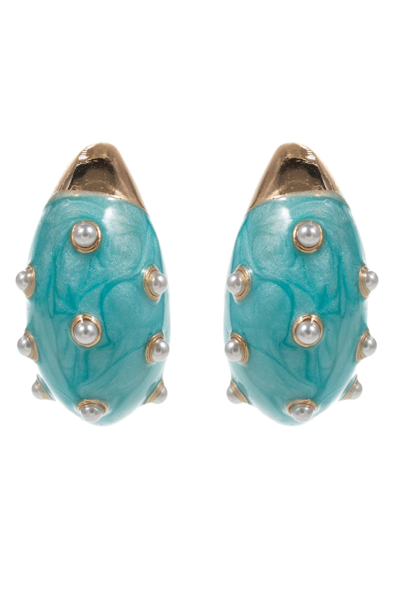 Introducing our 1-inch round shaped pearlized enamel earrings. Made with hypoallergenic titanium posts, they provide a comfortable wear for those with sensitive ears. The elegant pearls add a touch of glamour to any outfit. Perfect for those looking for style and comfort in one.