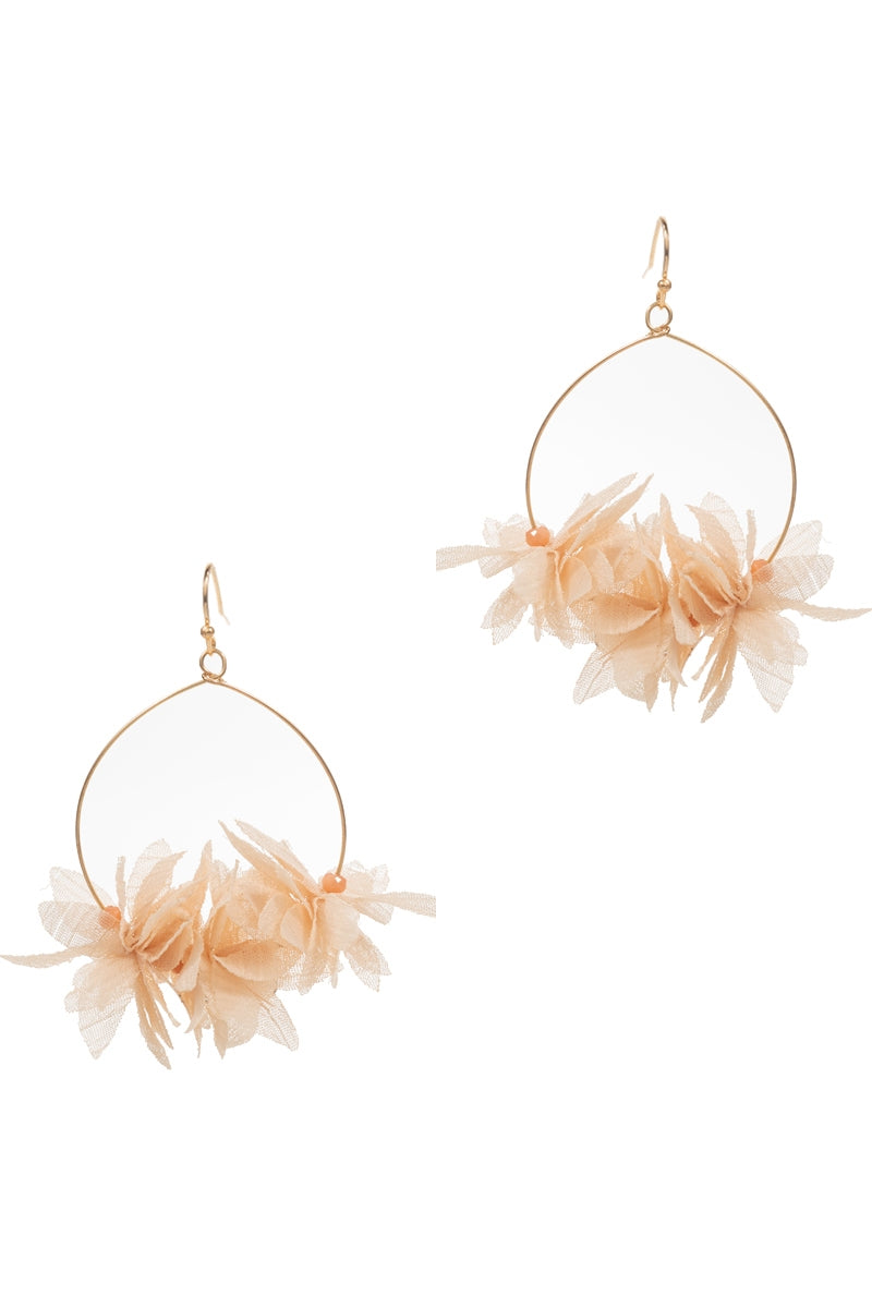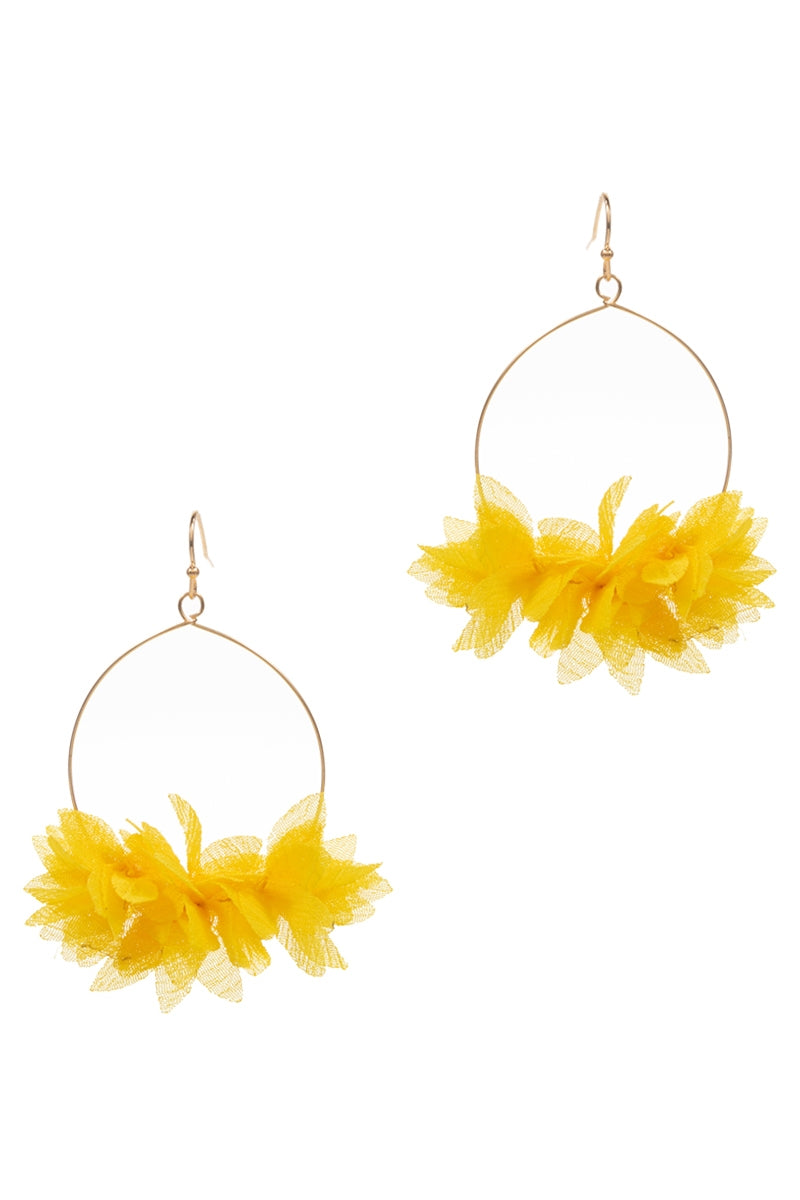 These Round Shaped Fabric Flower Hook Earrings are a must-have for any fashion-forward individual. Made from high-quality materials, these earrings are designed to add a touch of elegance to any outfit. With a delicate and unique round shape, these earrings are perfect for any occasion. Elevate your style with these stunning earrings.
