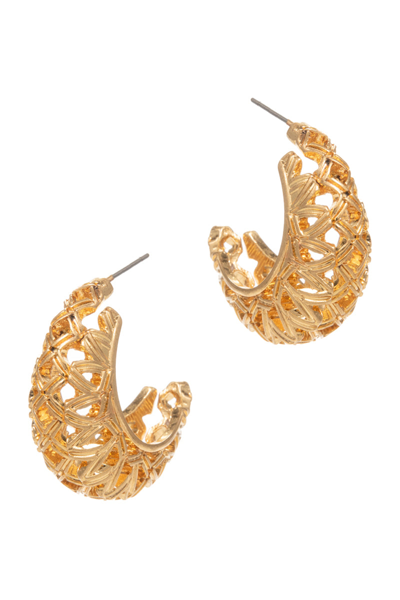 Round Shaped Lattice Pattern Metal Hoop Earrings