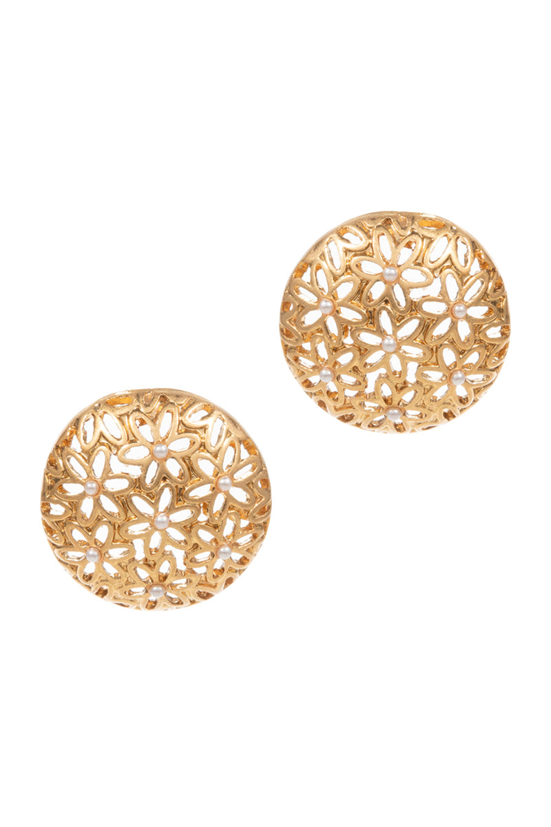 Enhance your look with these vintage metal post earrings featuring a delicate 1 inch round shape and intricate puffed flower pattern.