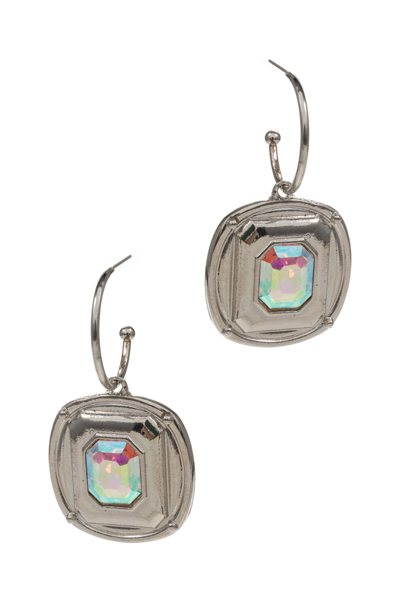 Round Shaped Rhine Stone Hoop Earrings