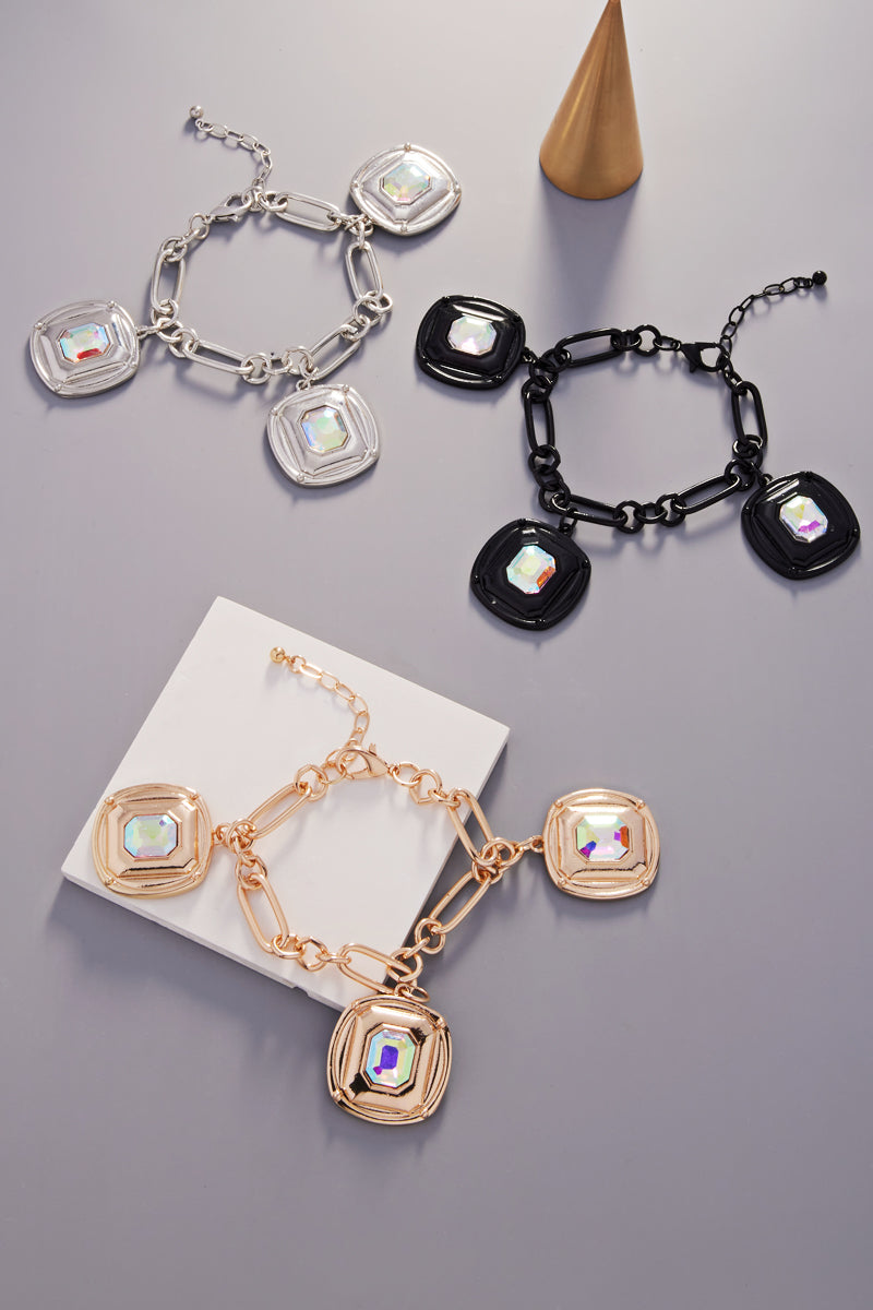 Round With Square Shaped Rhinestone Clasp Bracelet