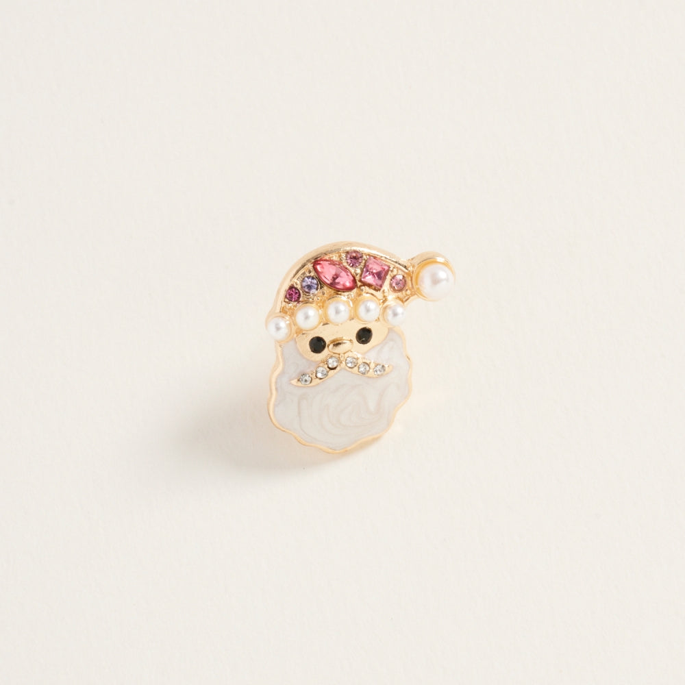 Add a cheerful holiday touch to your outfit with Santa face post earrings adorned in pearl accents and rhinestone details.