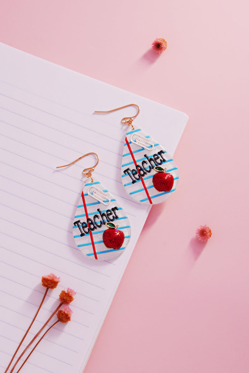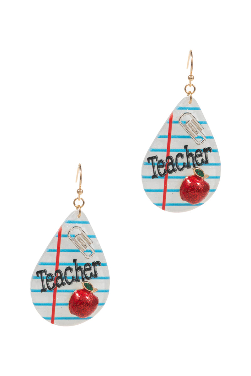 Expertly crafted with an elegant 2 inch teardrop shape, these acetate earrings feature an enameled apple design perfect for Teacher's Day. Comfortable to wear with a secure hook closure. Celebrate educators in style with this unique accessory.