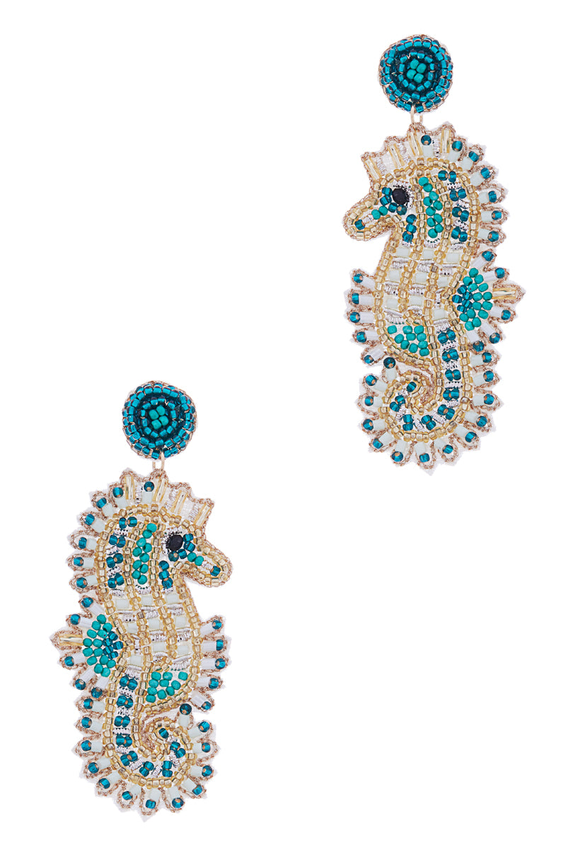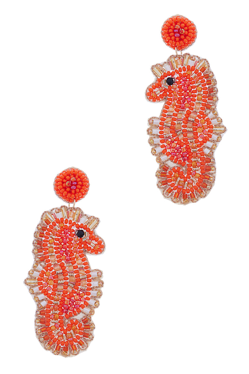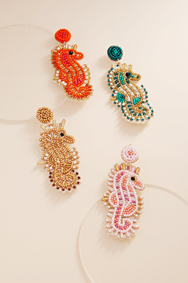 Introducing our 3 Inch Seahorse Seed Bead Post Earring - a unique and eye-catching accessory for any occasion. Handcrafted with intricate seed bead detailing and featuring a stunning seahorse design, these earrings are both stylish and elegant.