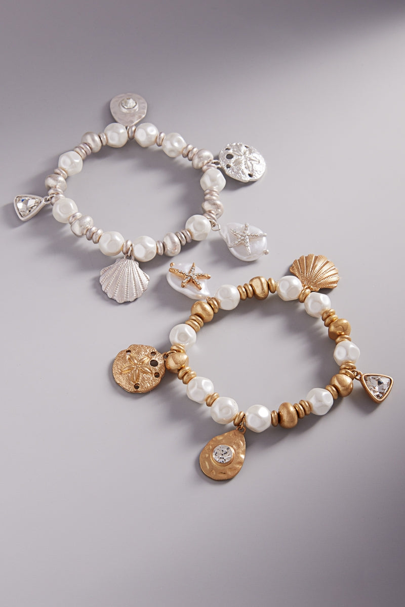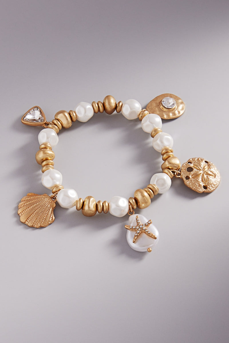 Sealife Shaped Pearl With Charm Stretch Bracelet