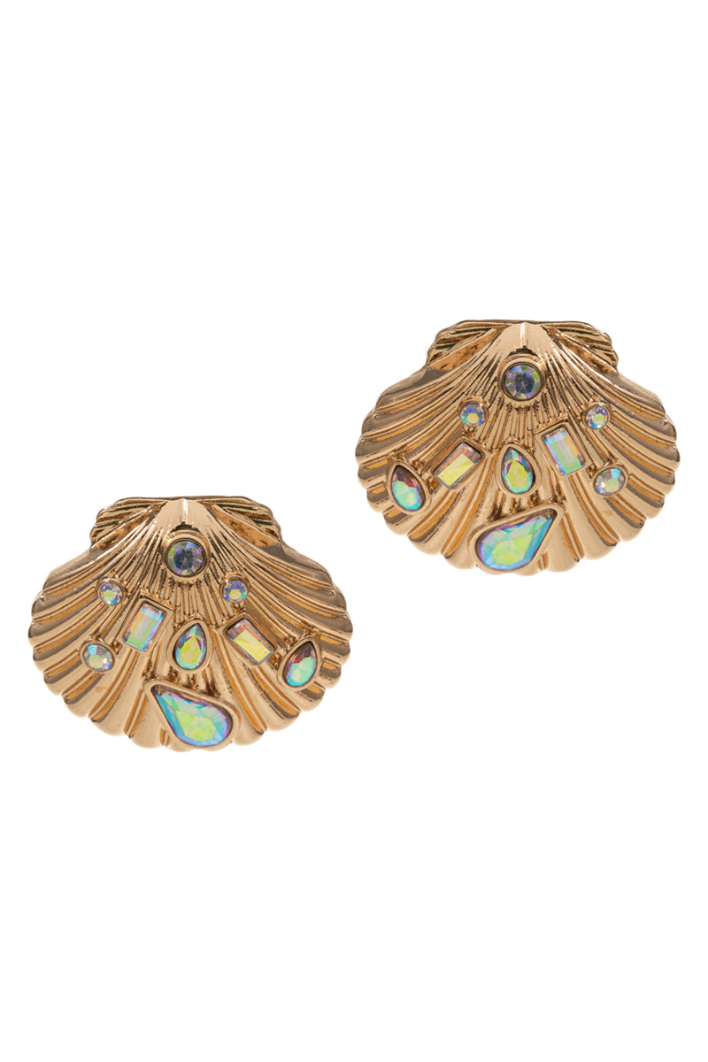 Shell Shaped Rhinestone Encrustrd Post Earrings
