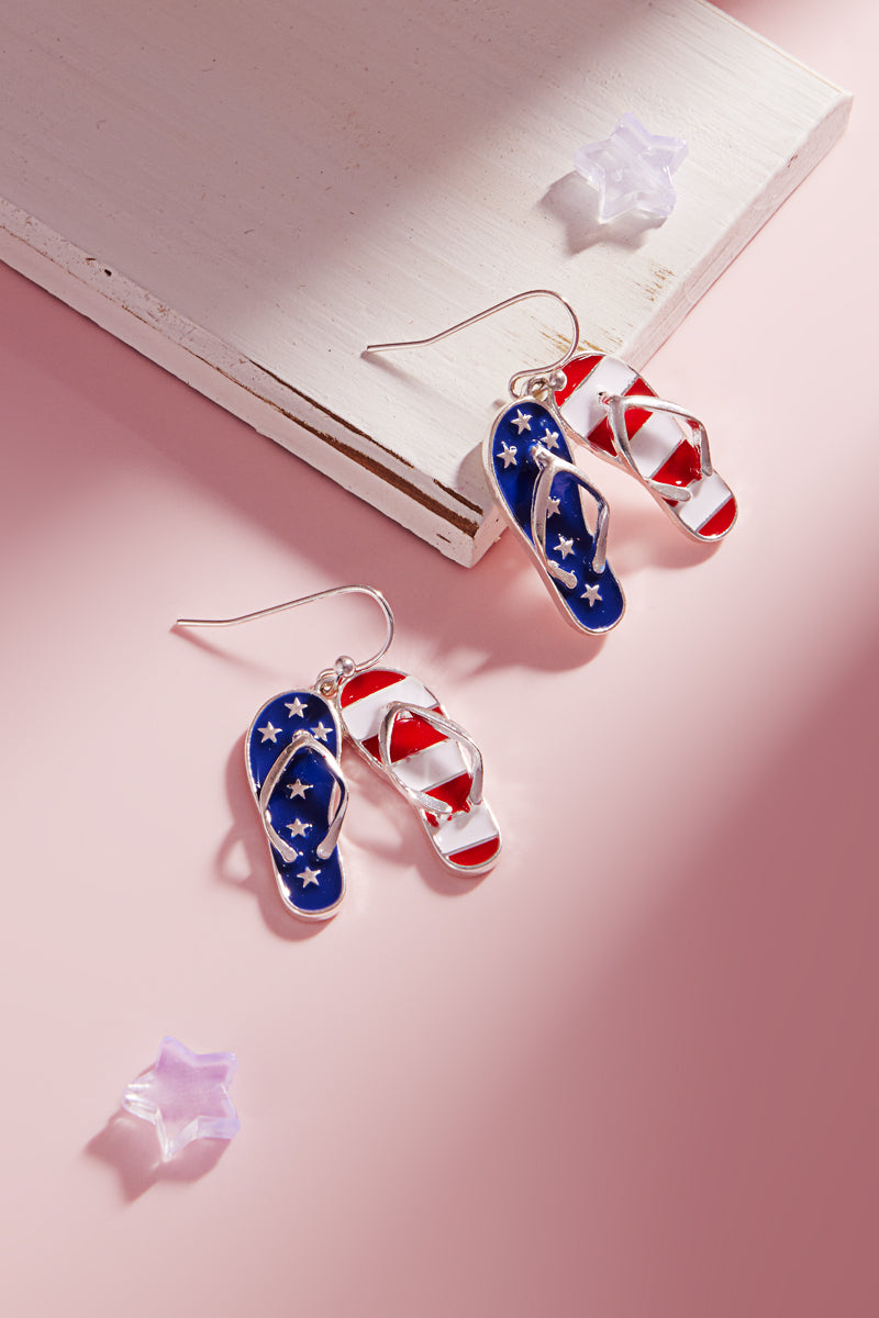 As a product expert in accessories, these 1.25-inch hook earrings are designed with a unique and stylish American flag color enamel, adding a fun touch to your outfit. Comfortable and slipper-shaped, they are perfect for a casual look or to show your patriotism.