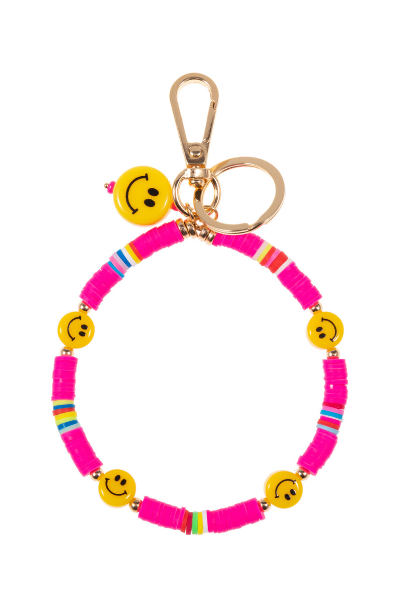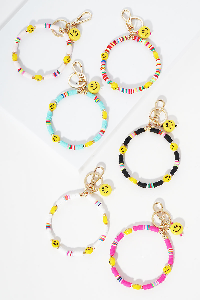 This 3 inch smiley face keychain is both fun and functional. Featuring a durable rubber bead design, it adds a touch of personality to your keys while also providing easy grip for quick access. Perfect for adding a bit of cheer to your daily routine.