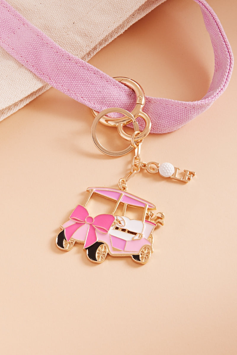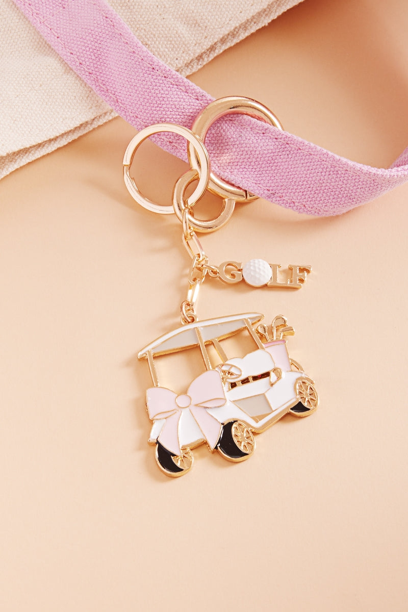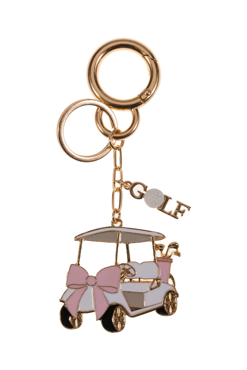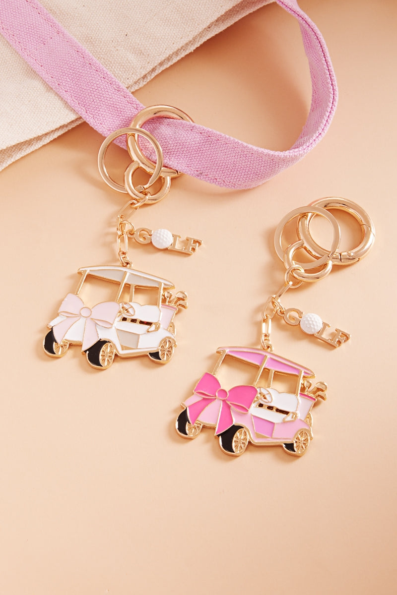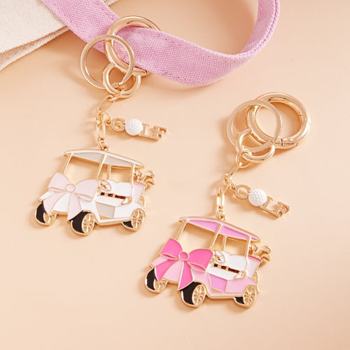 Sports Golf Cart Enamel W Bow Bag Charm Keychain