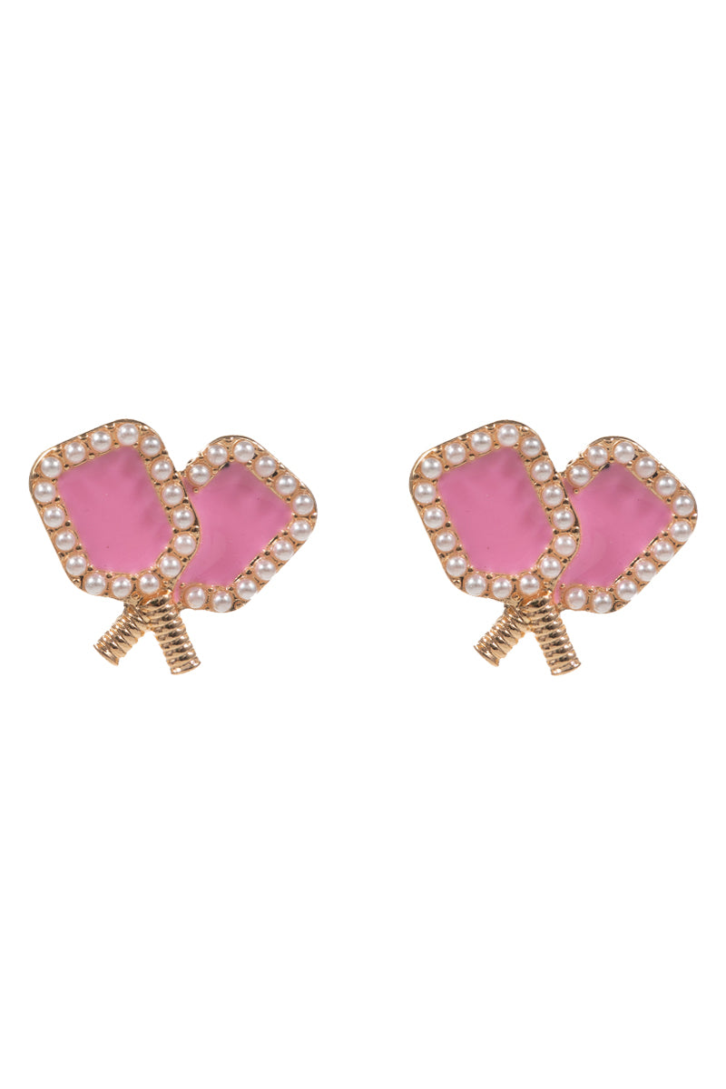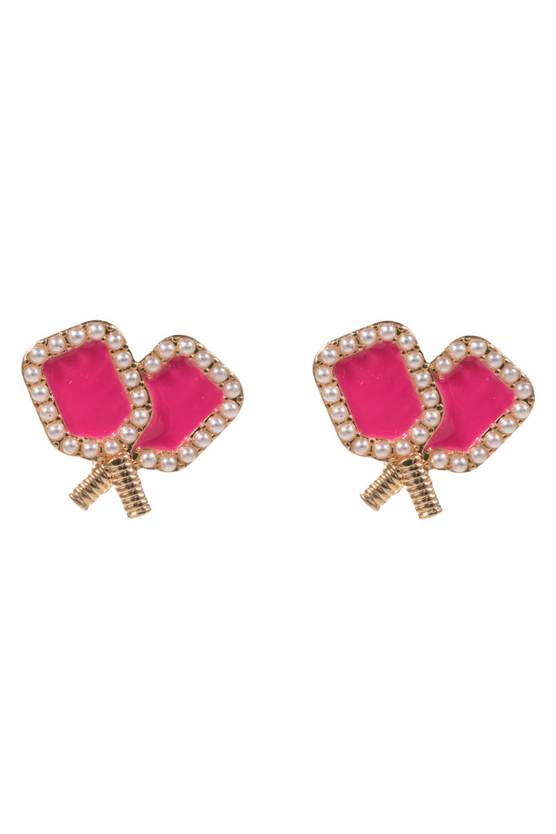 Add a fun twist to your wardrobe with these 0.75 inch enameled pickleball shaped earrings. Featuring a unique and stylish design with a pearl post, these earrings are the perfect accessory for any pickleball lover.
